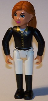 Belvfem78a | Belville Female - Horse Rider, White Shorts, Black Shirt with Gold Buttons and Collar, Black Boots, Dark Orange Ponytail, Riding Hat - Belville #7587 Belville |