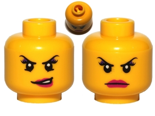| 1 X Minifig, Head Dual Sided Female Dark Pink Lips, Eyelashes, Purple Eye Shadow Conniving / Angry Pattern - Blocked Open Stud | Yellow |   | ![]() |