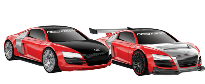 The custom Audi R8 is an exclusive design found only in Need for Speed! This slick sports car comes in a fire red paint job with contrasting silver rear doors on the sides, with Audi and Need for Speed decals, chrome-spoked rims and a cool authentic road issue license plate! Customize your Audi R8 with awesome S-Line interchangeable parts like a vented hood, street grill and thin-spoke black street rims! Build your car, shift into gear and redline your Audi R8 against other Need For Speed cars, racing to the finish line to become the ultimate Need for Speed racer!