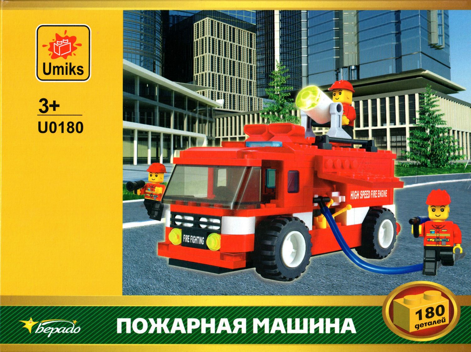 | Большой набор с качественной моделью пожарной машины и двумя фигурками пожарников. Read |