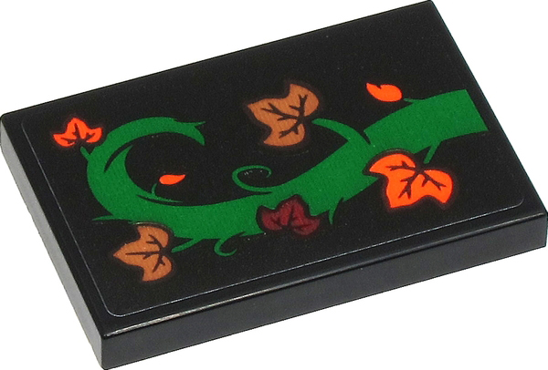 Tile 2 x 3 with Green Tree Branch with Dark Red, Orange and Medium Nougat Leaves Pattern Model Right Side (Sticker) - Set 40423