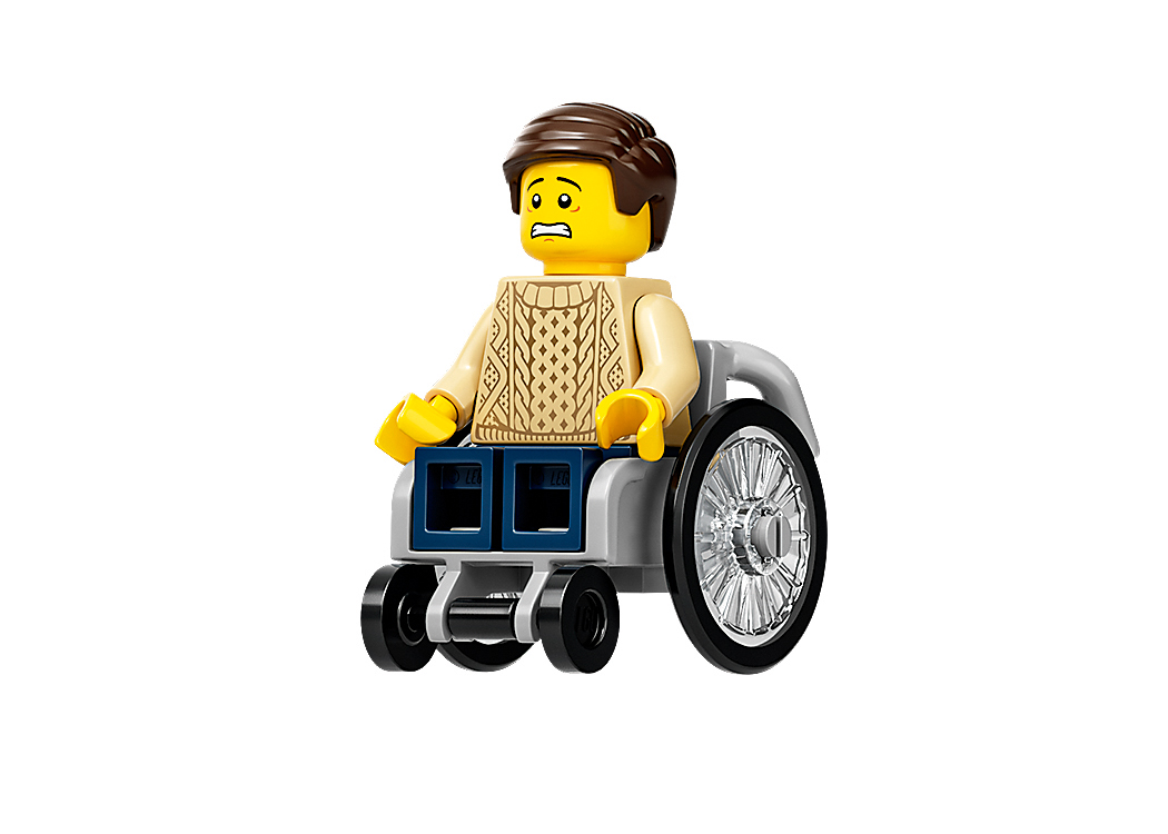 | 1 X Minifigure, Utensil Wheelchair with Trans-Clear Wheelchair Wheels and Black Trolley Wheels | Light Bluish Gray |   |  |
