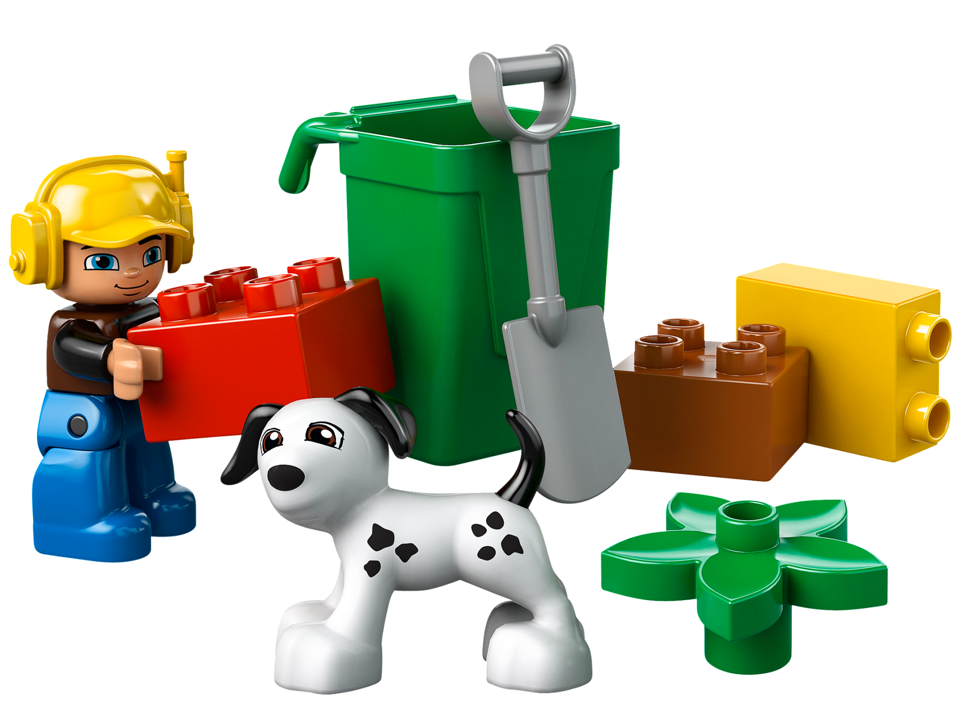 Duplo Figure Lego Ville, Male, Blue Legs, Brown Vest with Zipper and Zippered Pockets, Yellow Cap with Headset