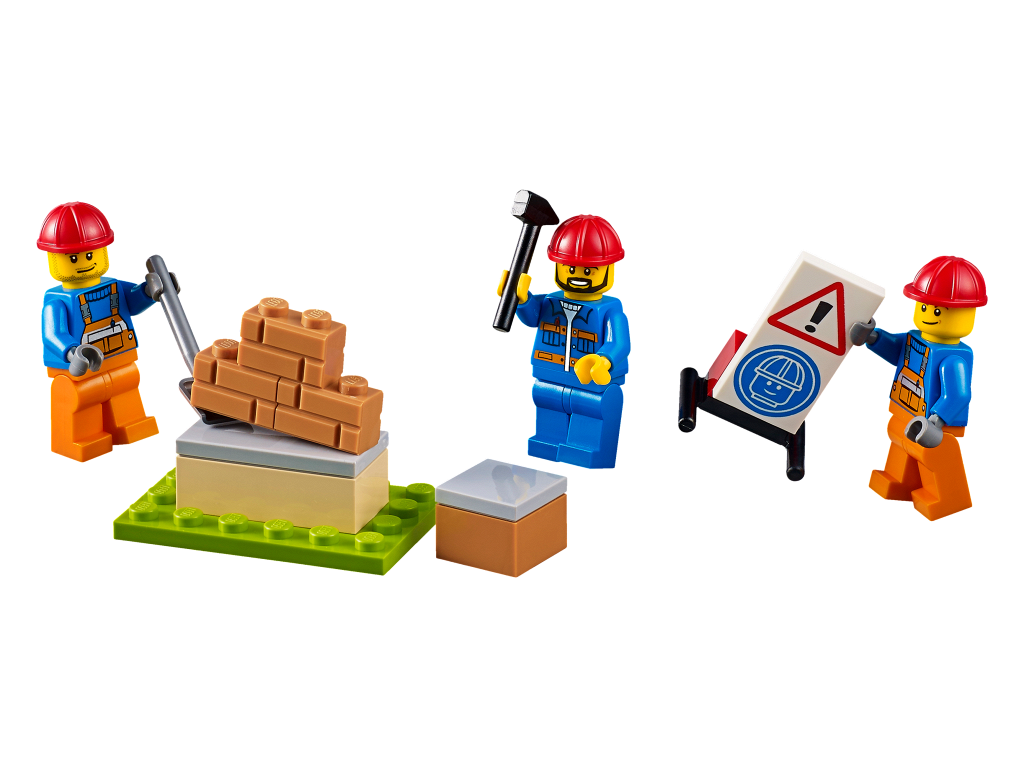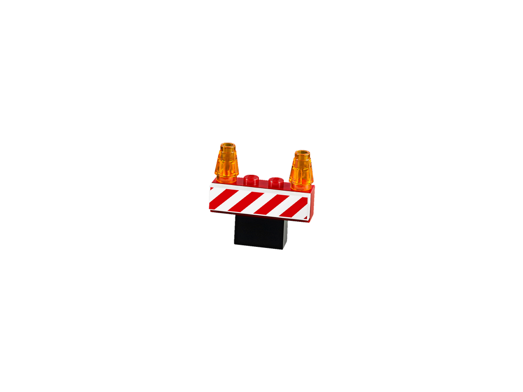 Tile 2 x 4 with Exclamation Mark in Warning Triangle and Minifig Head with Construction Helmet Pattern