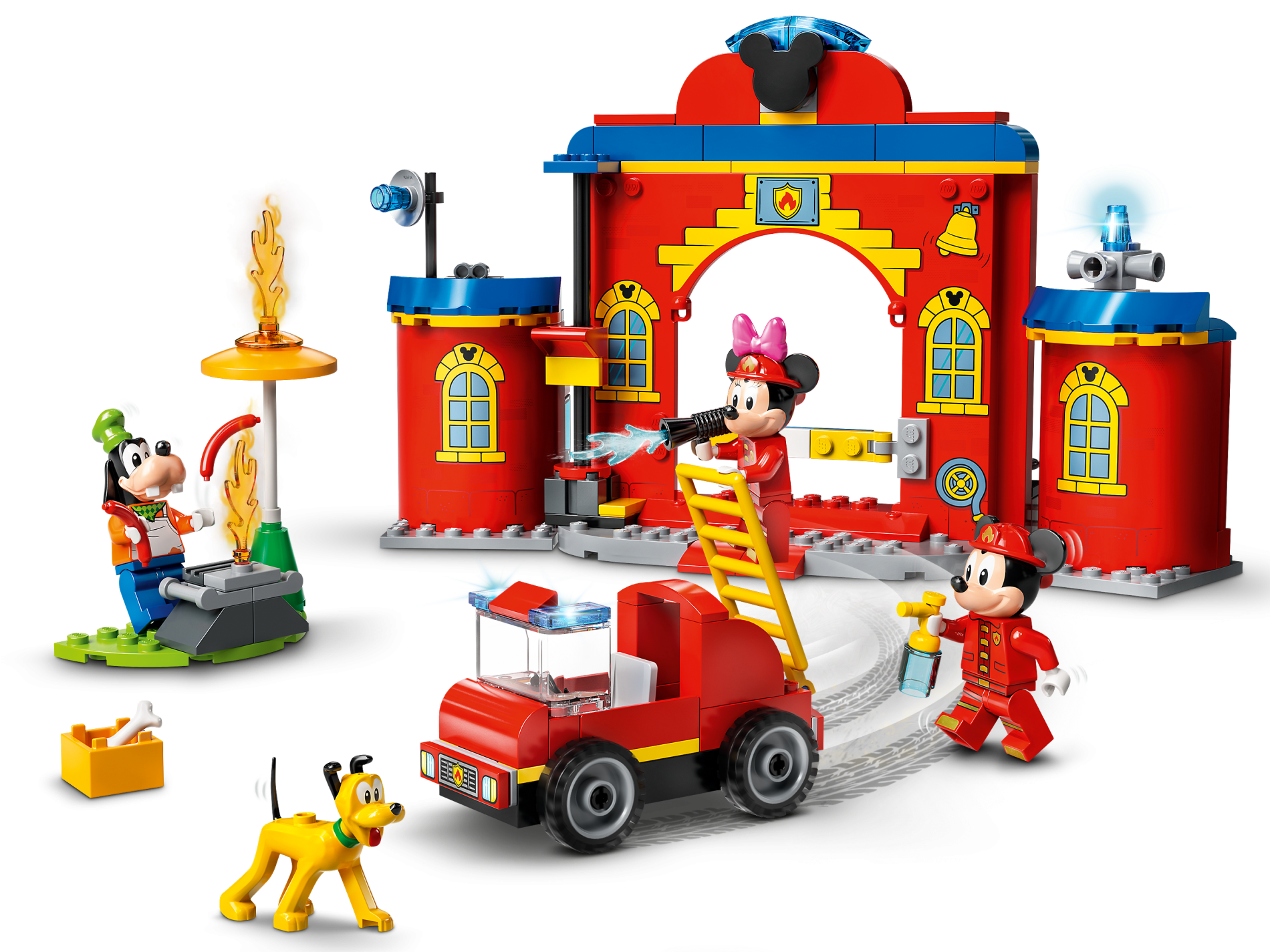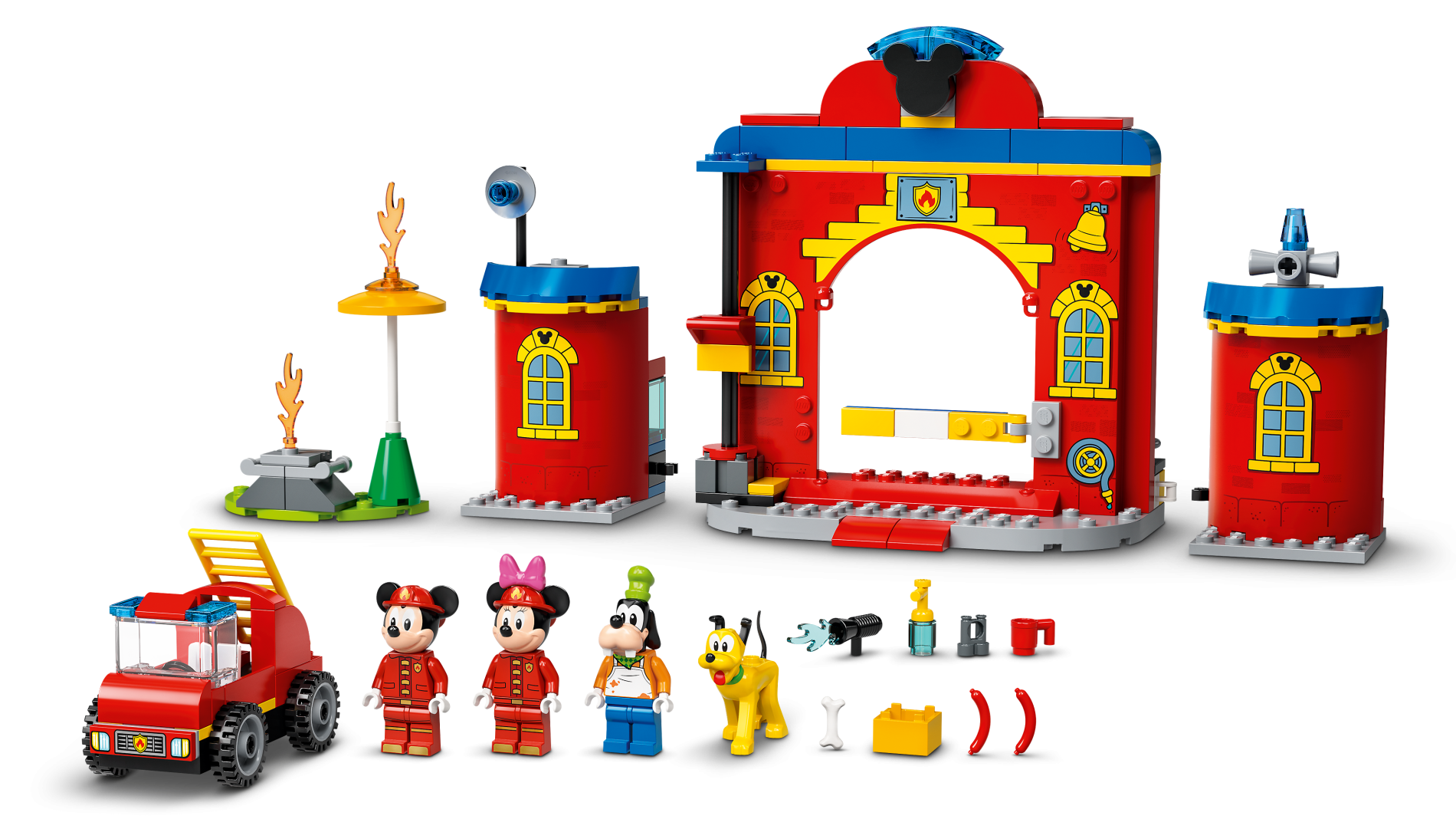 | 1 X Panel 4 x 16 x 10 with Curved Yellow Windows with Bricks and Mickey Mouse Logo, Fire Logo Badge, Yellow Bell and Hose Reel Pattern | Red |   |  |