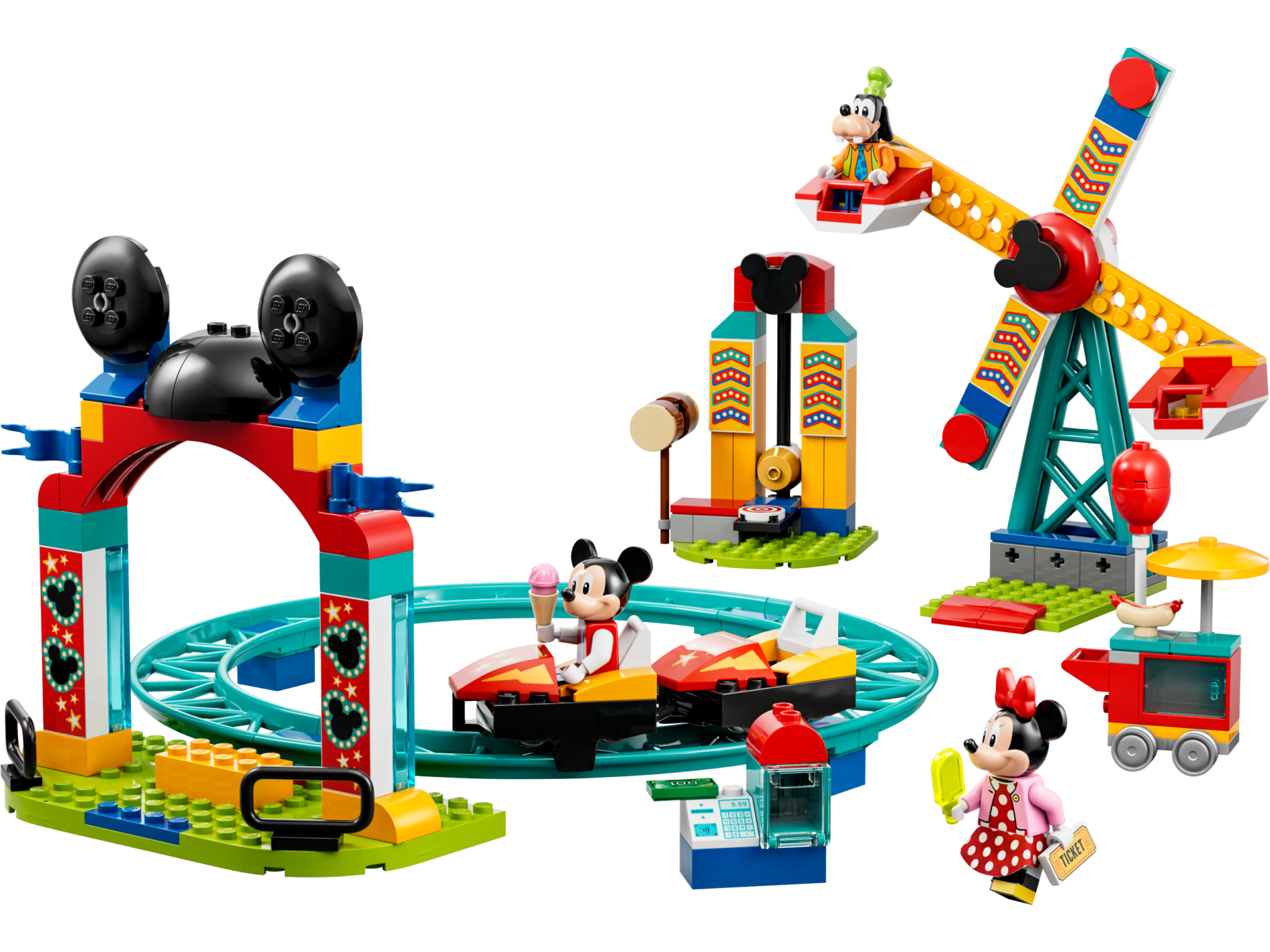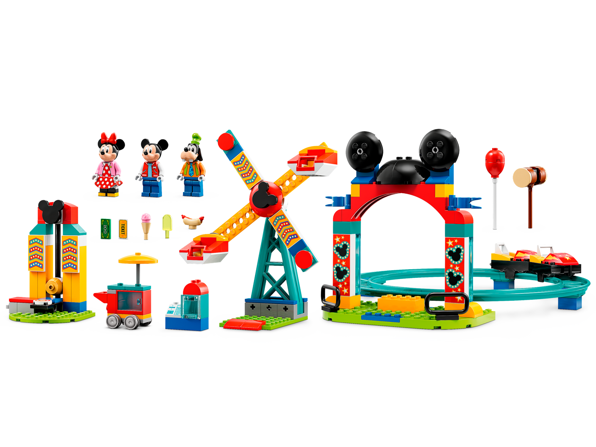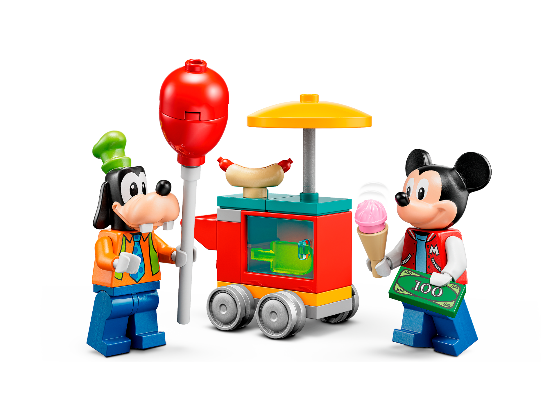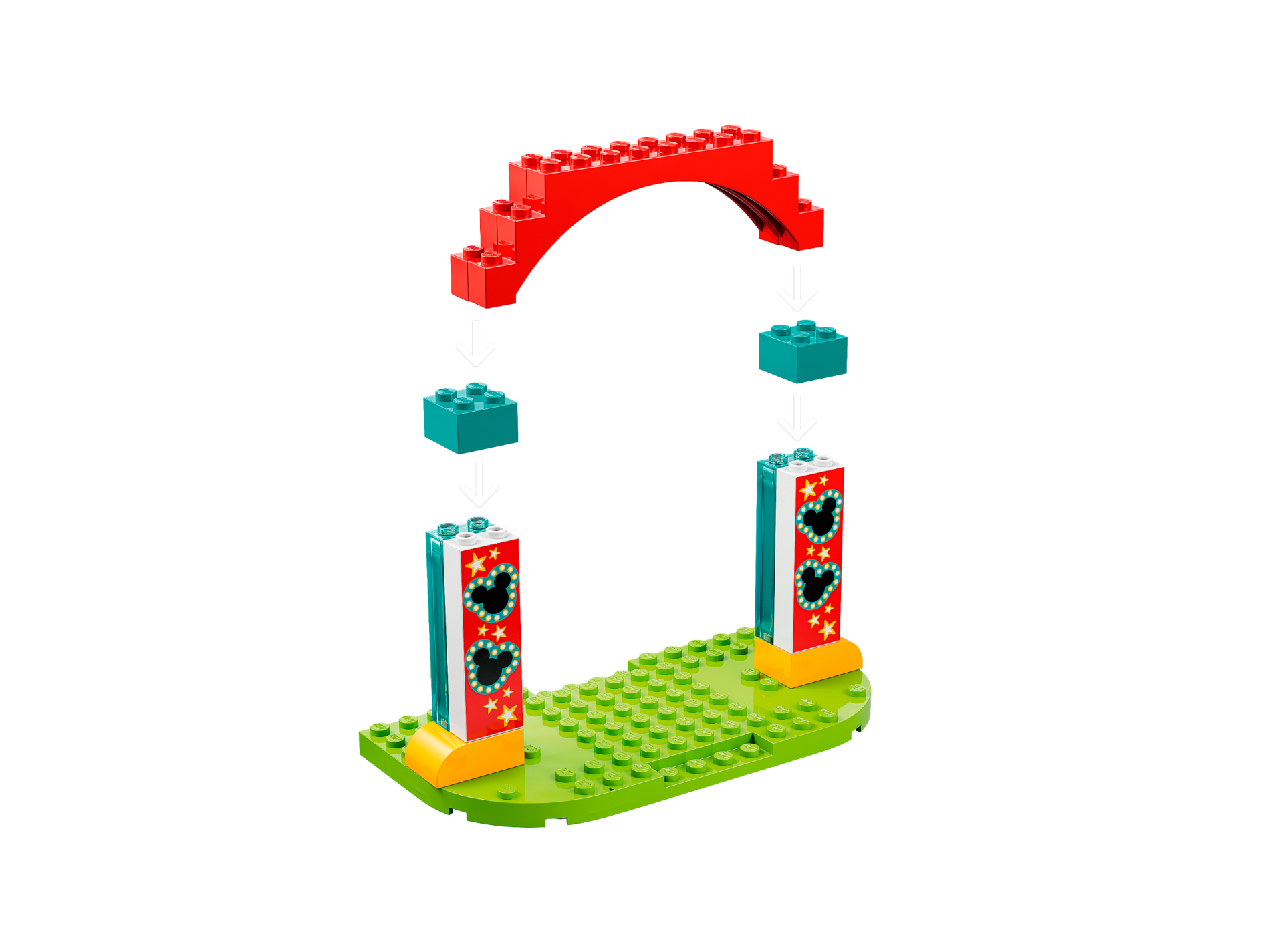 | 2 X Brick 1 x 2 x 5 with Black Mickey Mouse Logos with Dark Turquoise Border and Yellow and White Stars on Red Background Pattern | White |   |  |