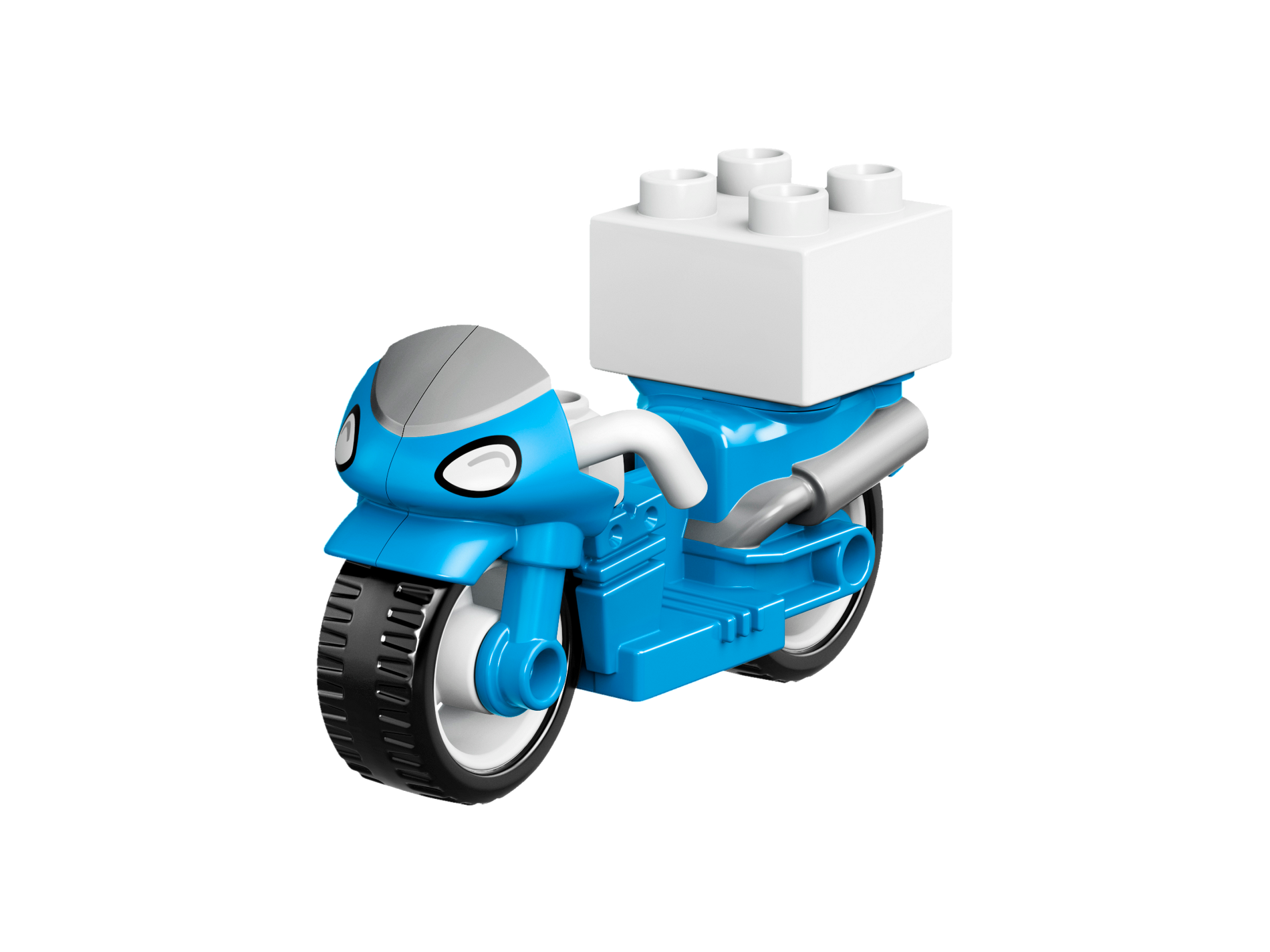 Duplo Motorcycle with Rubber Wheels, White Handelebars, Windscreen and Headlights Pattern