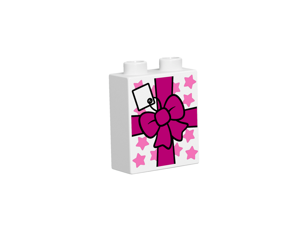 | 1 X Duplo, Brick 1 x 2 x 2 with Bottom Tube with Present / Gift with Bow and Stars Pattern | White |   |  |