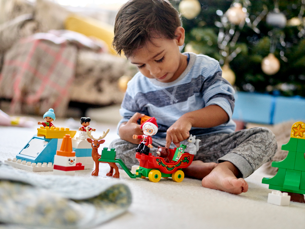 | 1 X Duplo, Brick 2 x 2 with Present / Gift with Bow and Stripes Pattern | Orange |   |  |