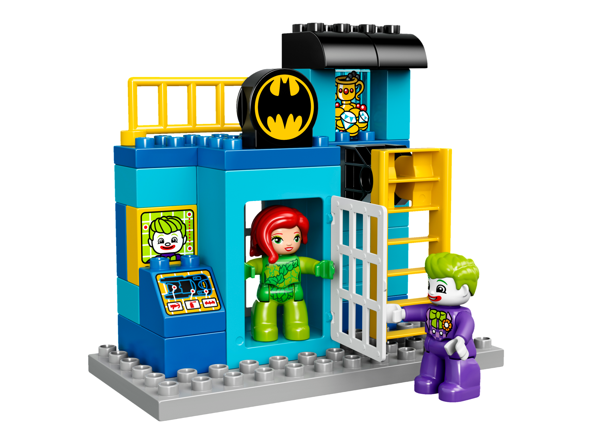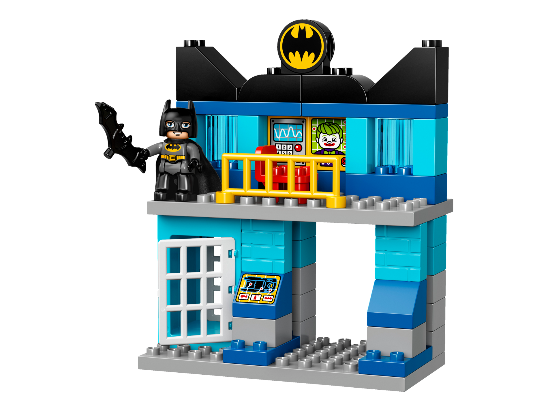 Duplo Cannon Shooting with Axle Hole, Red Firing Button and Locking Ring with Batman Logo Pattern