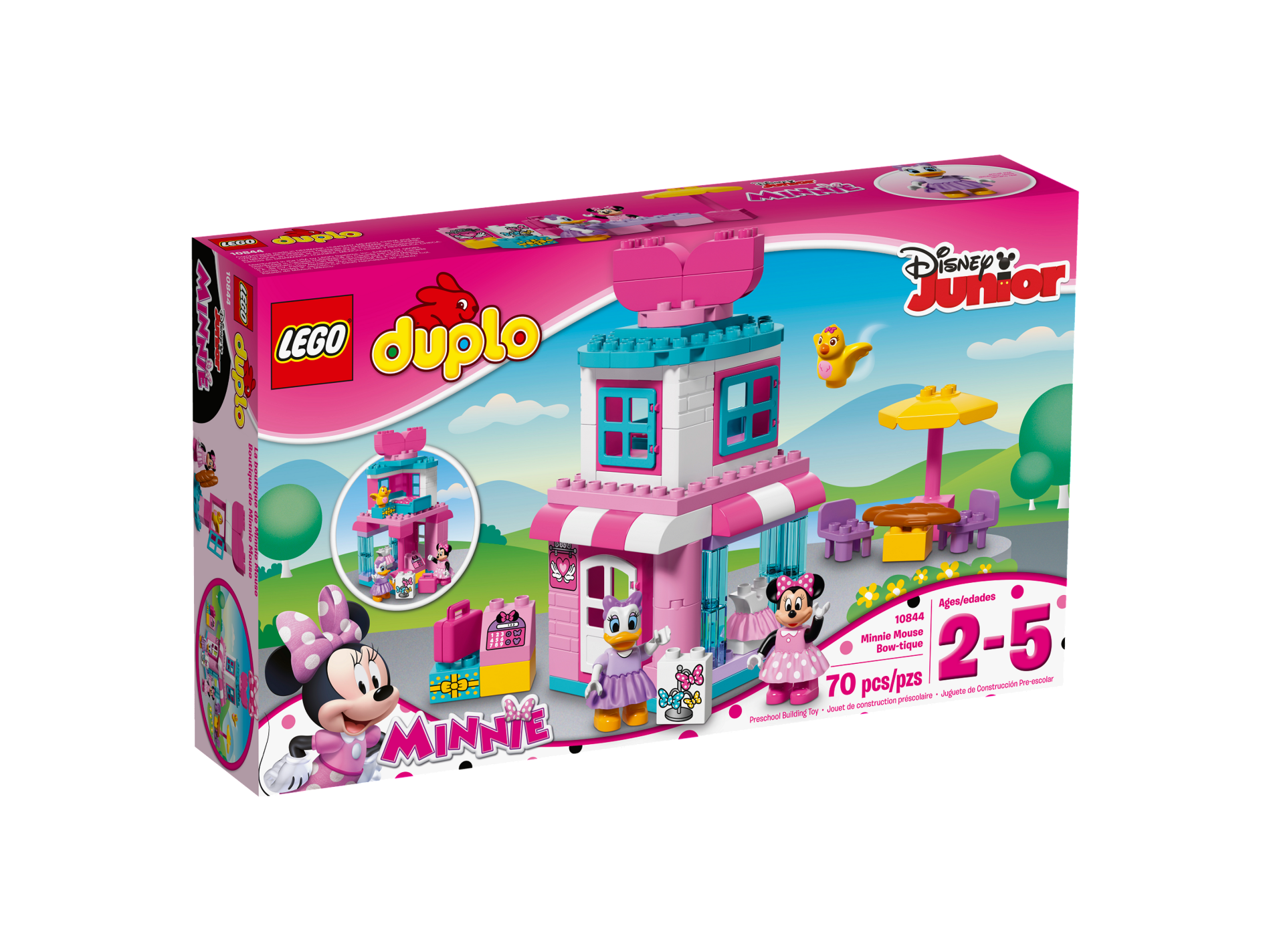 Duplo Figure Lego Ville, Minnie Mouse, Bright Pink Top with Black Sleeves, Dark Pink Legs
