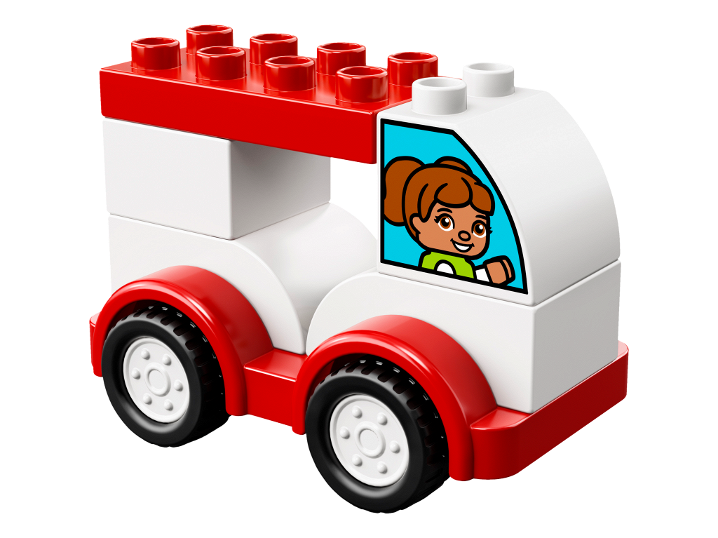 Duplo, Brick 2 x 3 with Curved Top and Headlights, Racing Stripes, and Number '1' Pattern