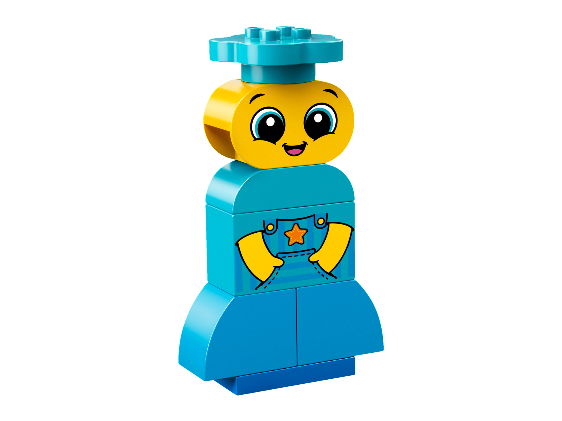 Duplo, Brick 2 x 4 x 2 with Striped Dungarees, Hands in Pockets and Orange Star Pattern