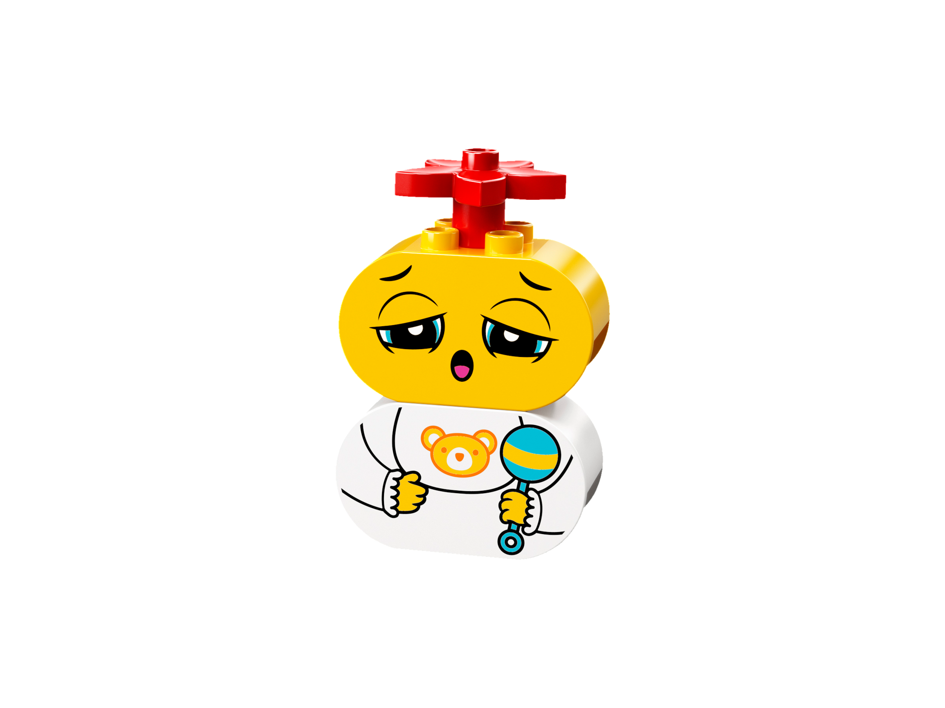 Duplo, Brick 2 x 4 x 2 Rounded Ends with Teddy Bear Bib and Medium Blue Rattle Pattern