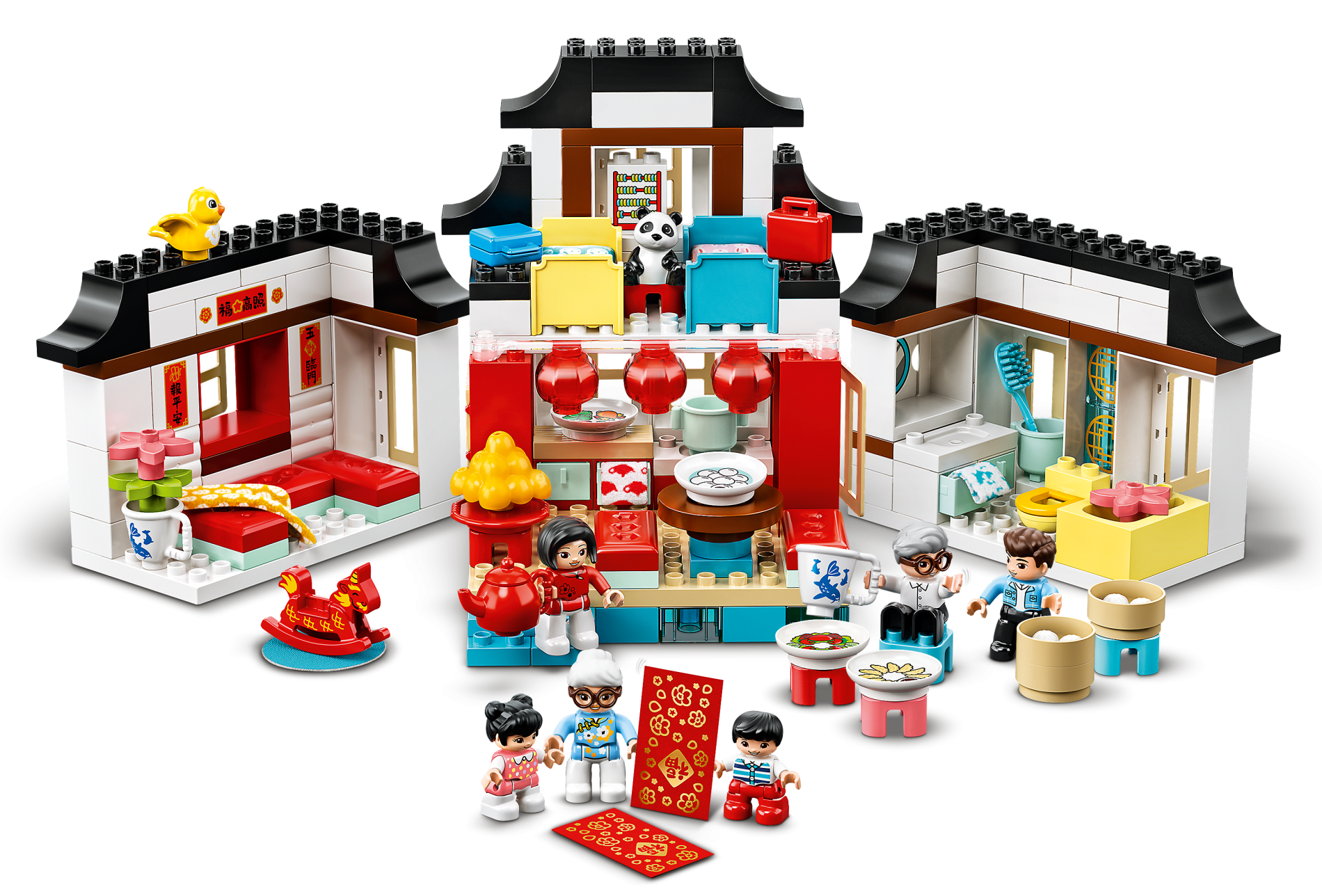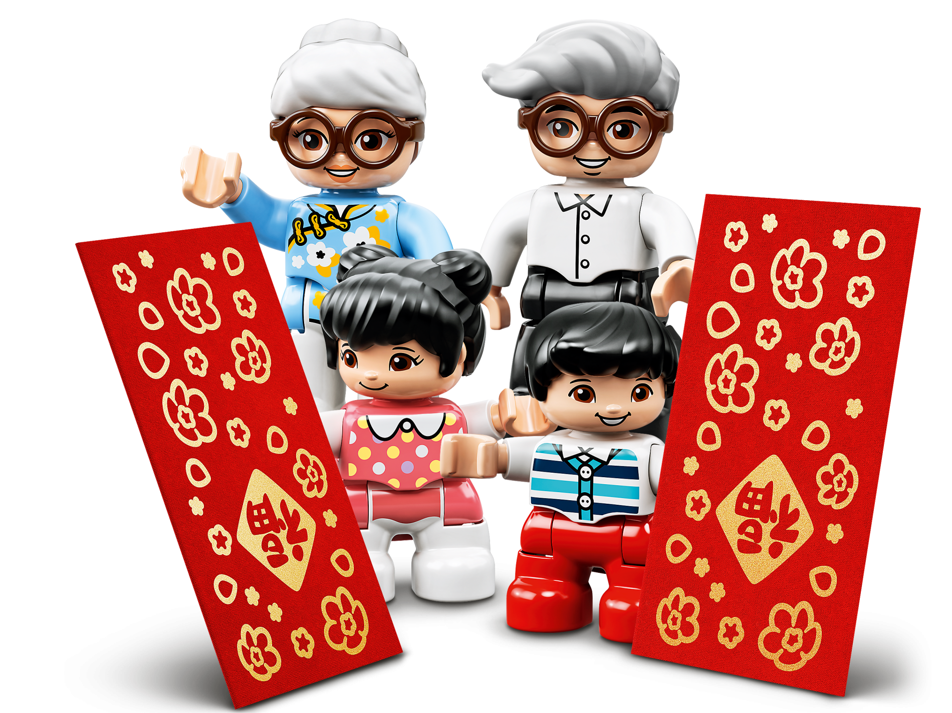 | 1 X Duplo, Brick 1 x 2 x 2 with Bottom Tube with Flower and Chinese Logogram '開富貴' and '五臨門' (Open the Door to Wealth) on Red Background Pattern | White |   |  |