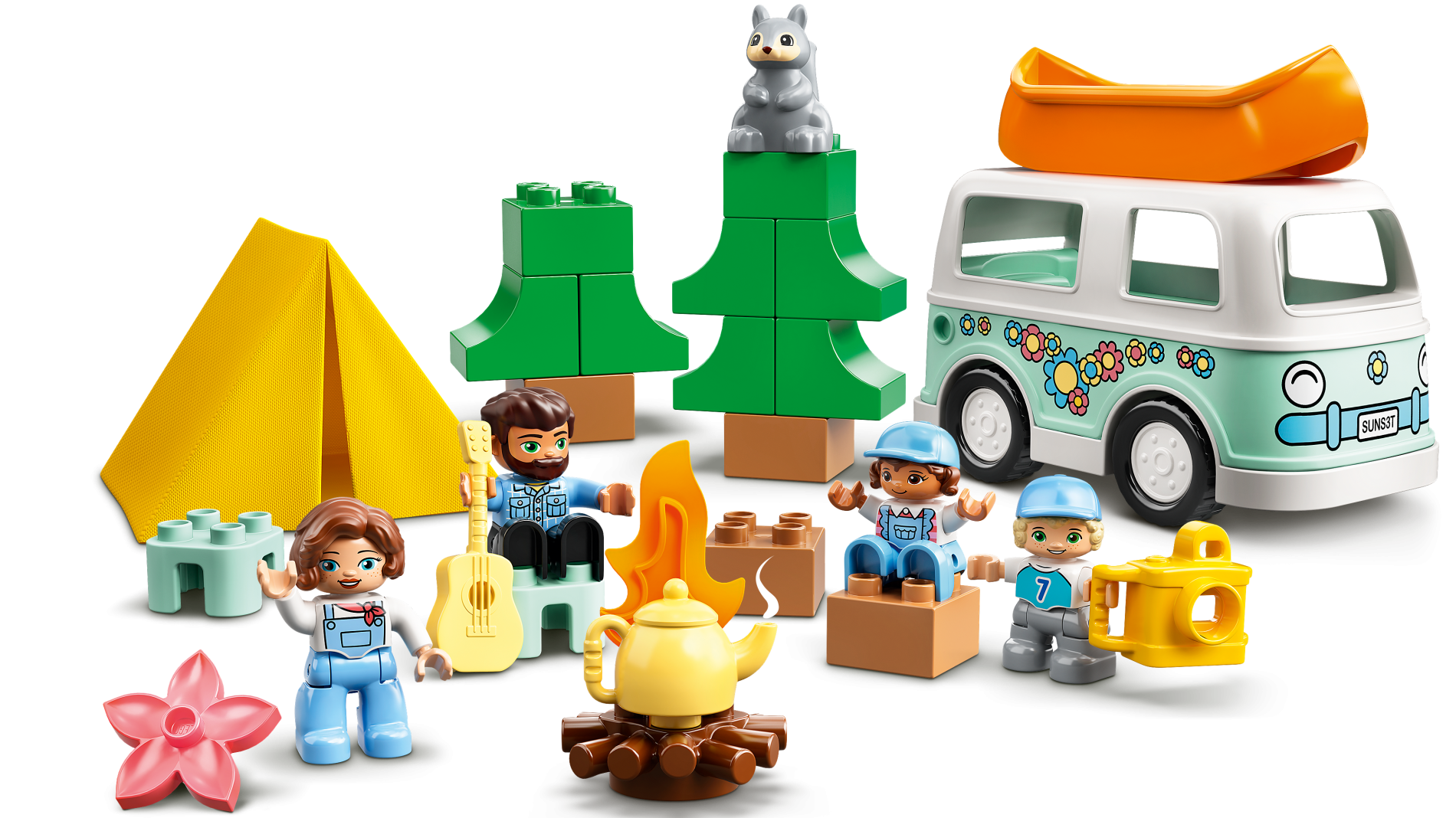 Duplo Car Body Bus Small Bottom Section with 'SUNS3T' License Plate and Flowers Pattern on Both Sides
