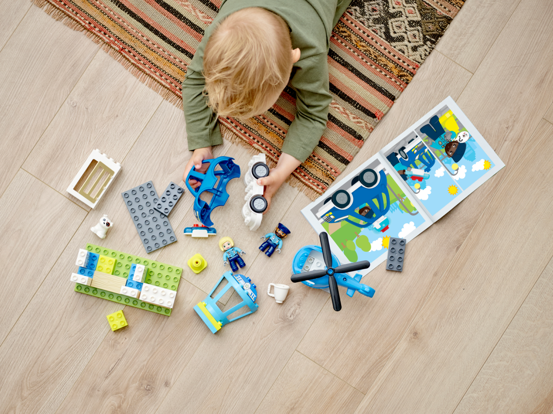 Duplo, Brick 1 x 2 x 2 with Bottom Tube with Map of Town with Blue Police Car, White Dog, and Red Route Pattern