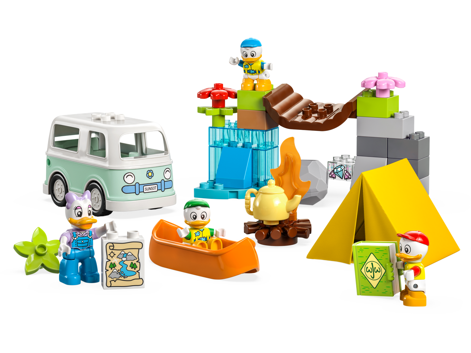 Duplo Figure Lego Ville, Dewey Duck, Neon Yellow Life Jacket, Dark Azure Arms and Cap (6438662)