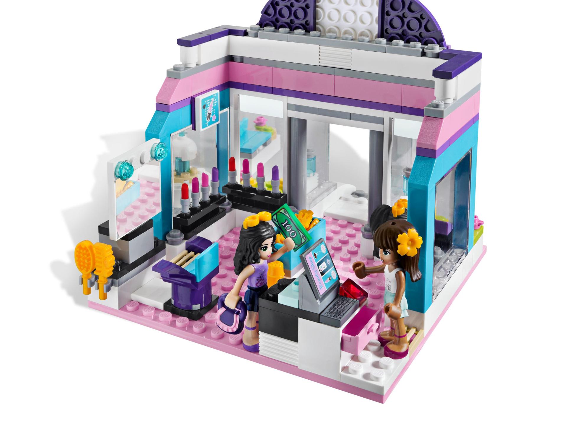 | 1 X Tile, Modified 4 x 6 with Studs on Edges with Girl and 'Beauty Shop' Pattern (Sticker) - Set 3187 | White |   |  |