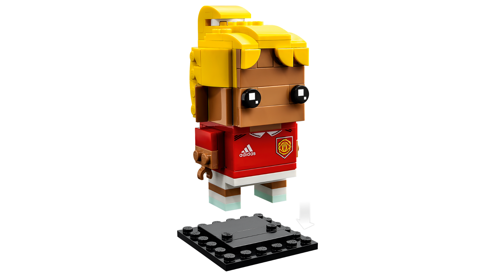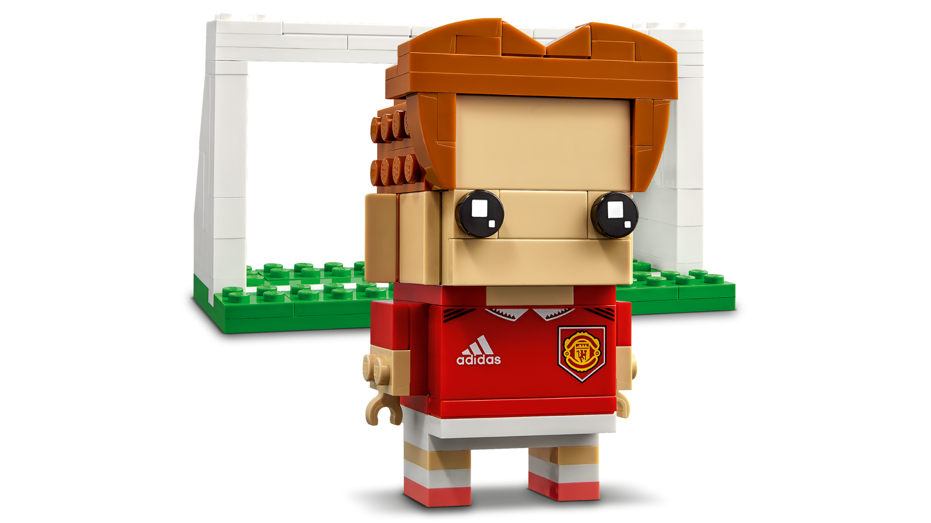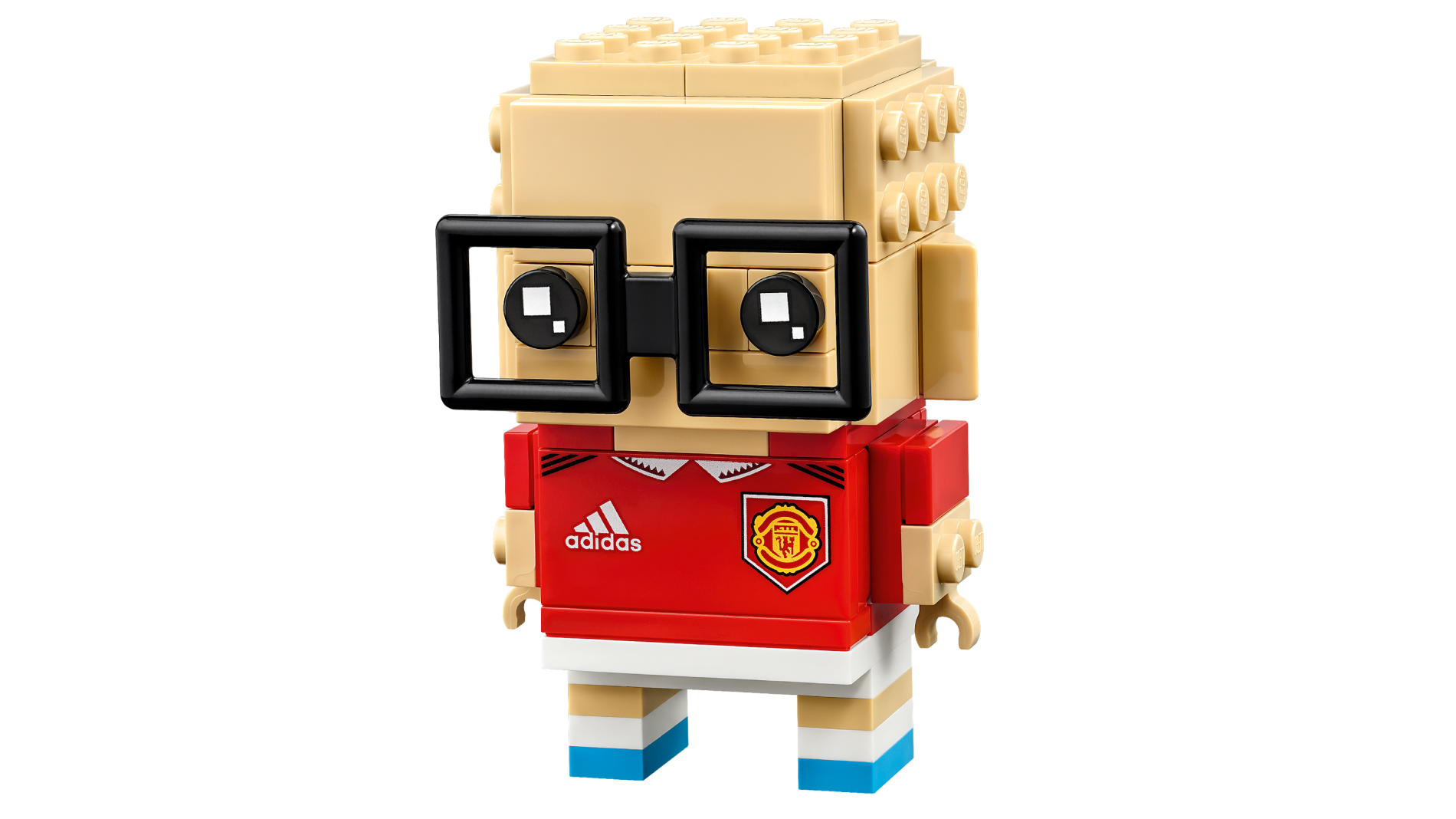 Tile 2 x 4 with White Adidas Logo and Manchester United Badge Pattern (BrickHeadz Soccer / Football Player Torso)