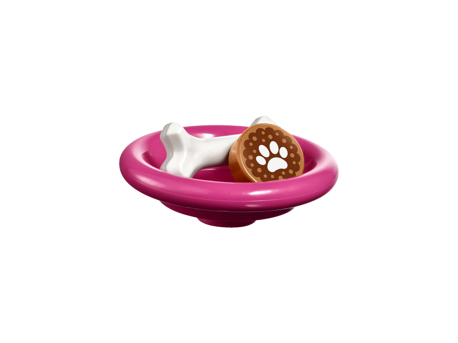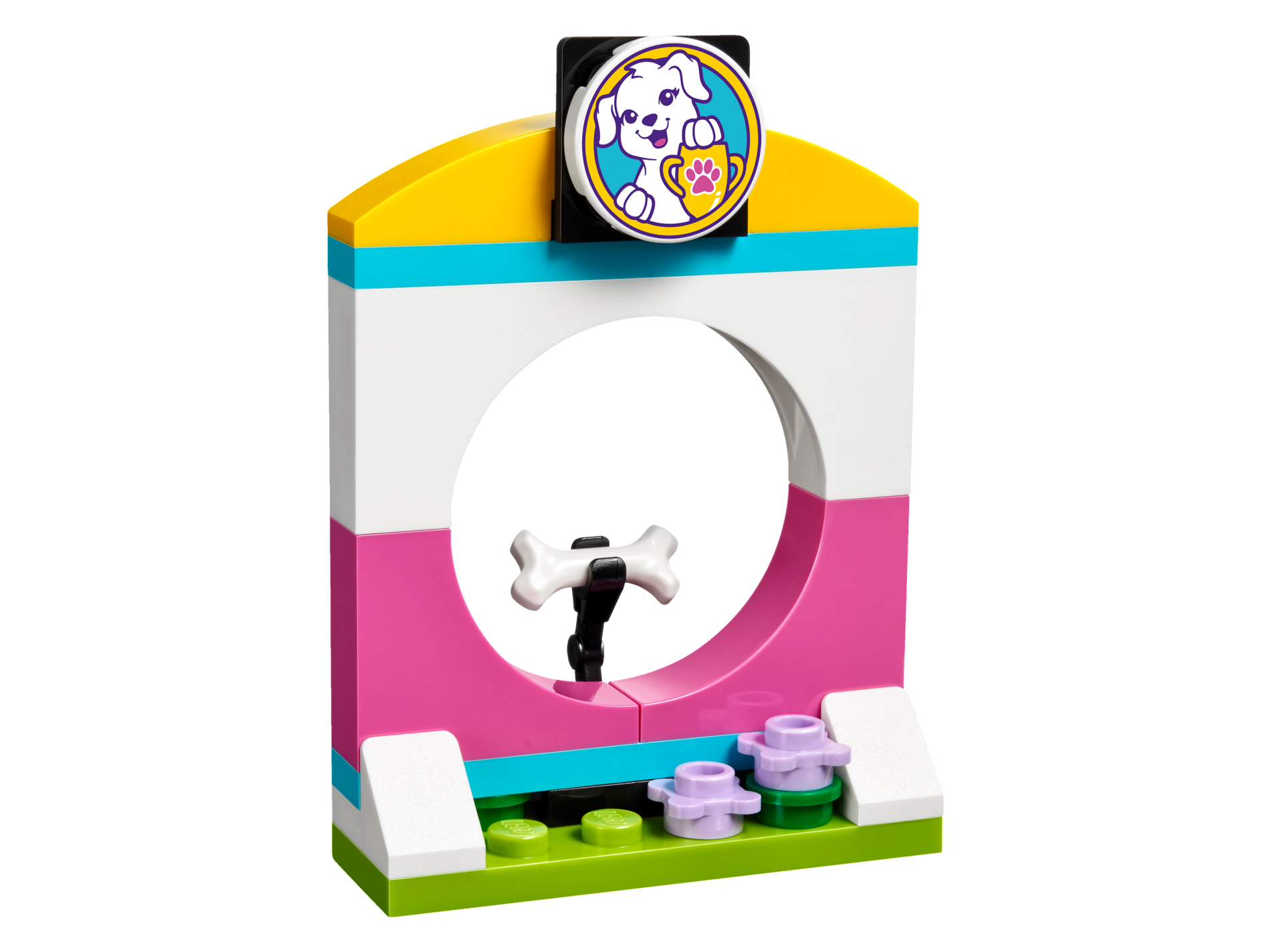 Tile, Round 2 x 2 with Bottom Stud Holder with White Puppy Dog and Yellow Trophy with Dark Pink Paw Print on Medium Azure Background Pattern