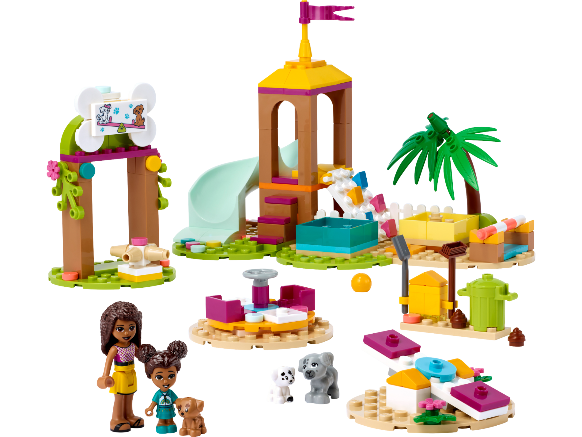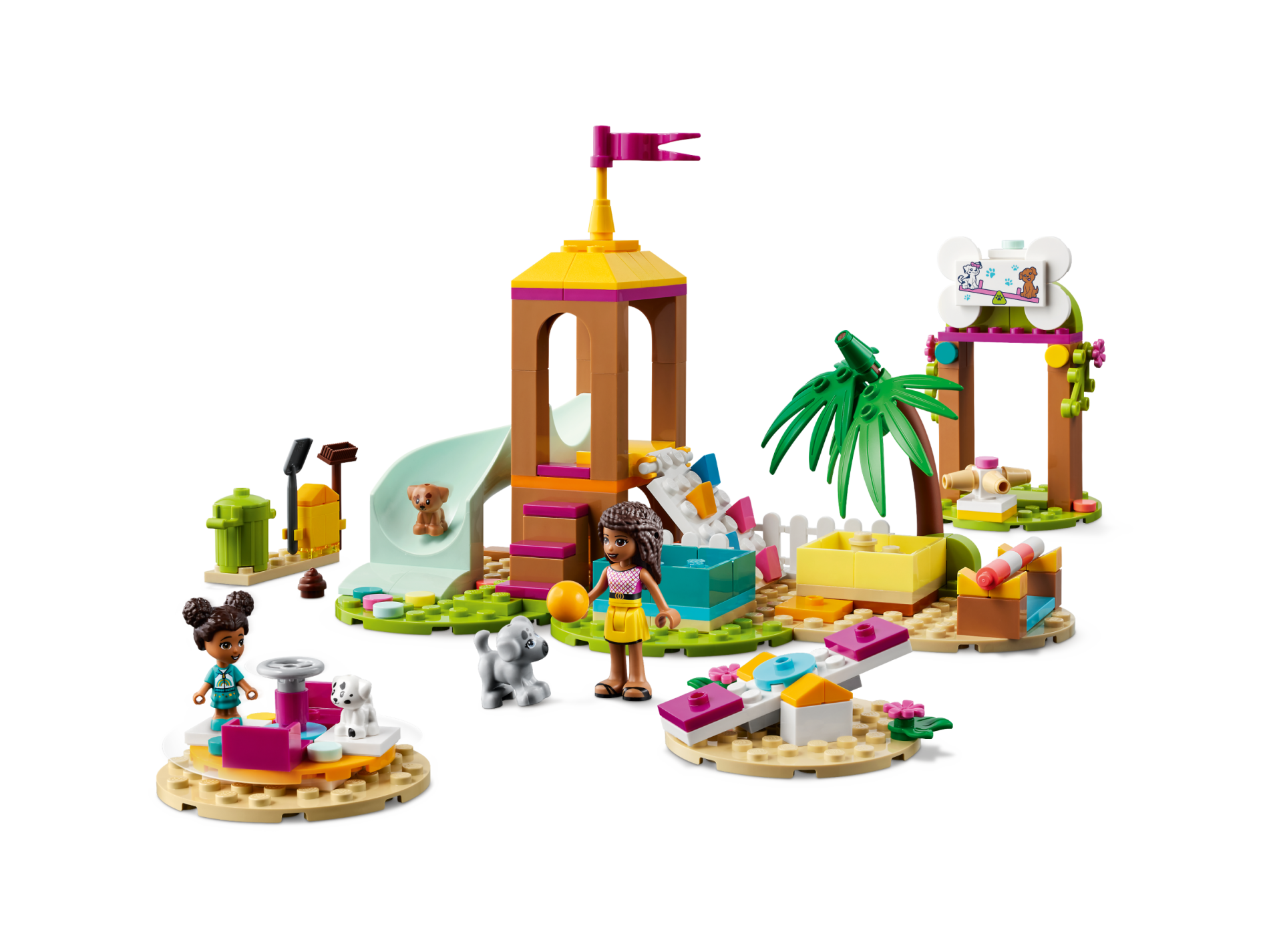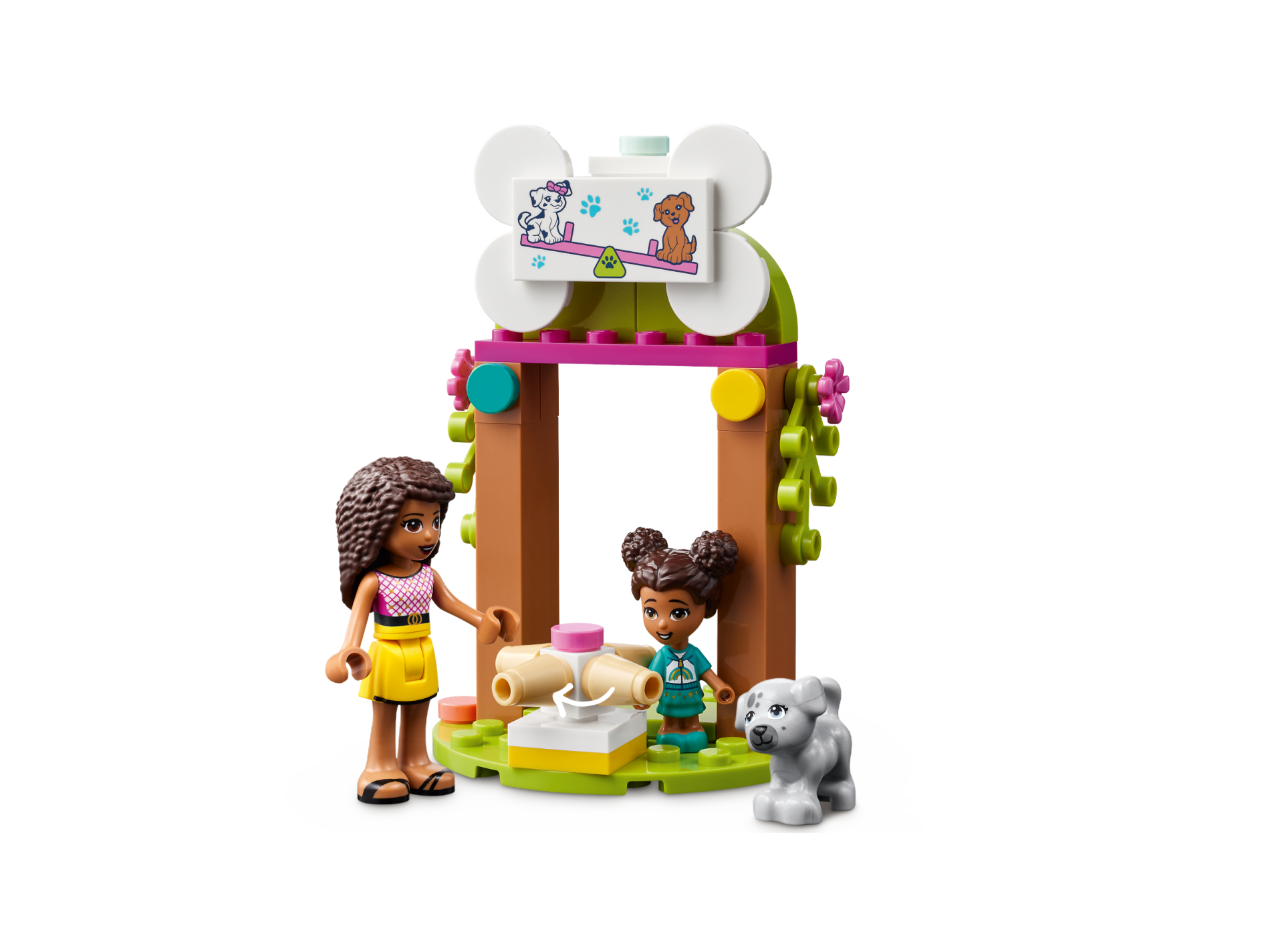 Tile 2 x 4 with Paw Prints and 2 Dogs on Dark Pink Seesaw Pattern