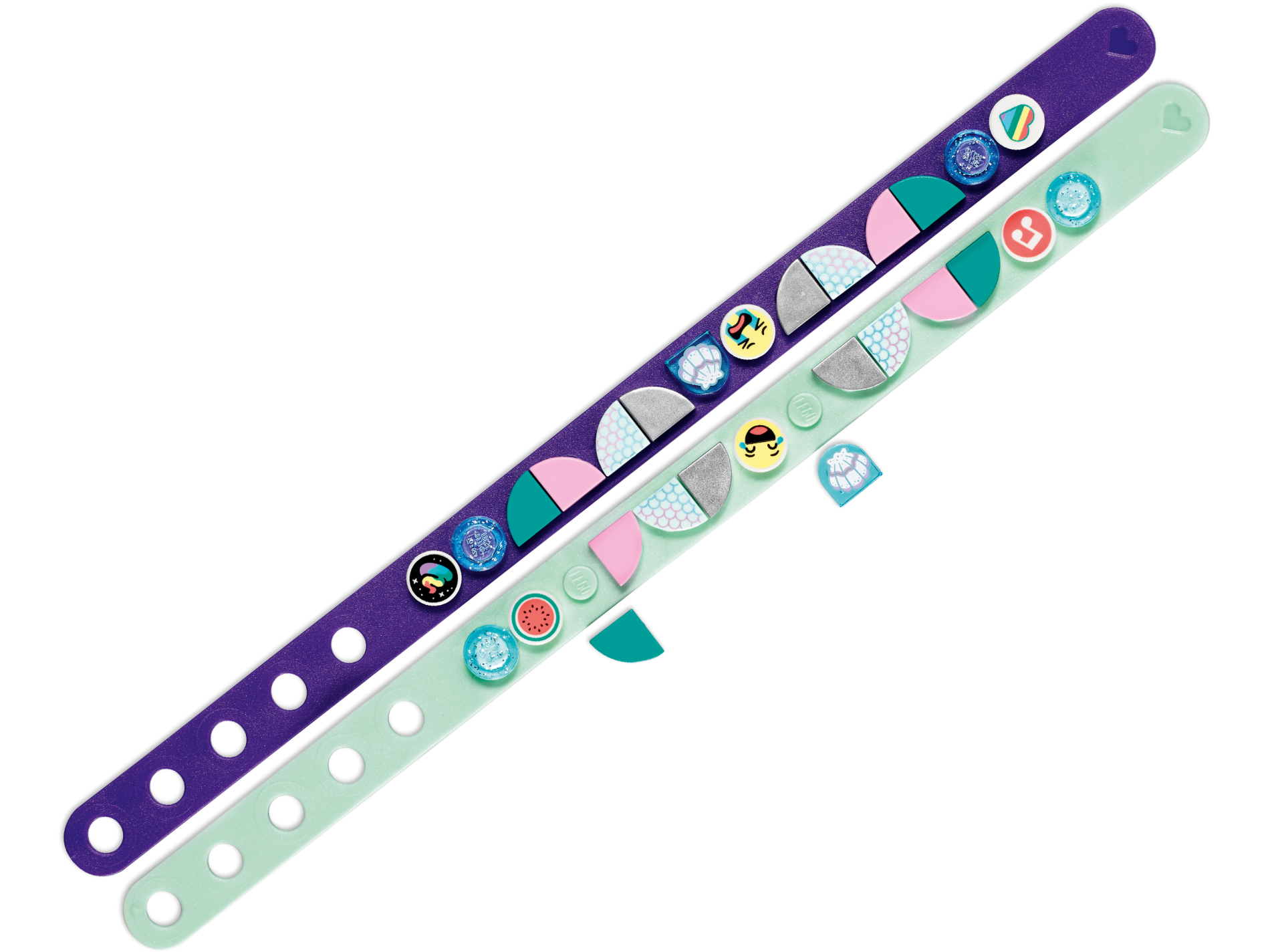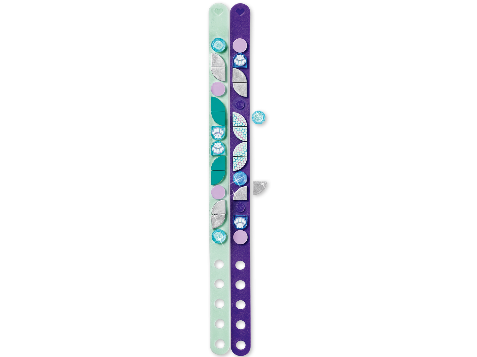 | 4 X Tile, Round 1 x 1 Half Circle Extended (Stadium) with White Clam Shell, Silver and Metallic Light Blue Trim Pattern | Trans-Light Blue |   |  |