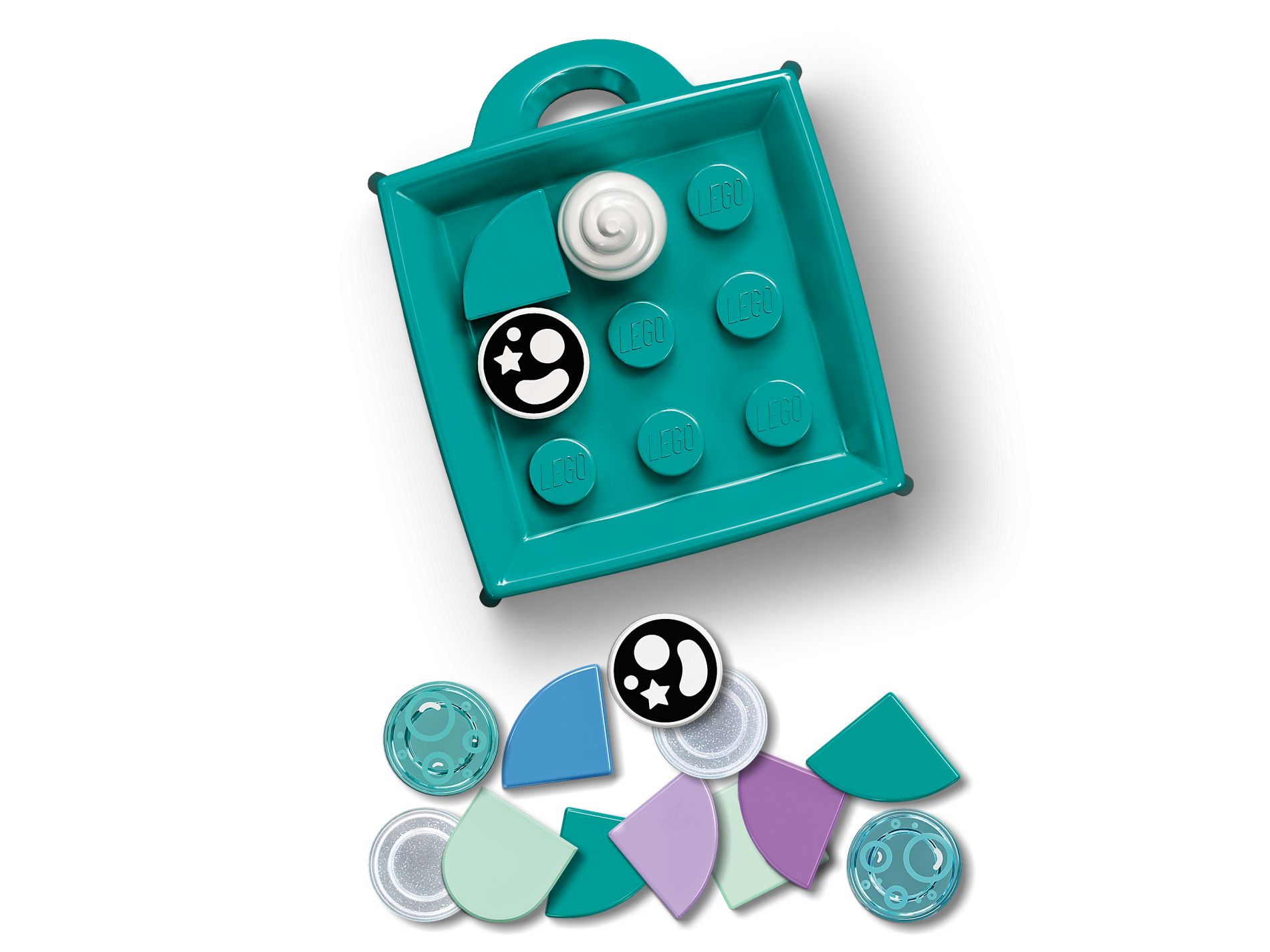 | 1 X Tile, Round 1 x 1 Half Circle Extended (Stadium) with Kissy Face (Number 3) and Metallic Light Blue Bubbles Pattern | Light Aqua |   |  |