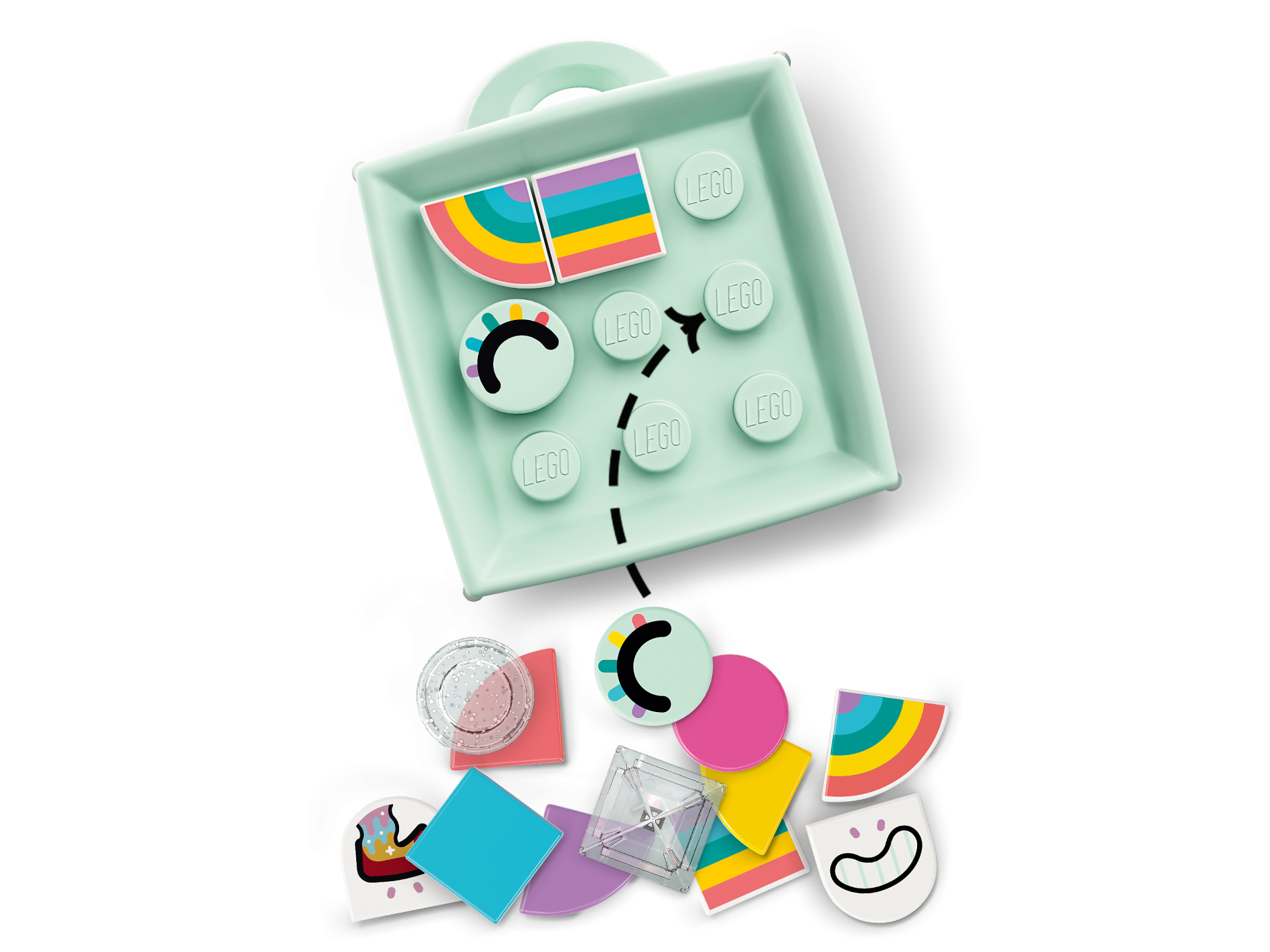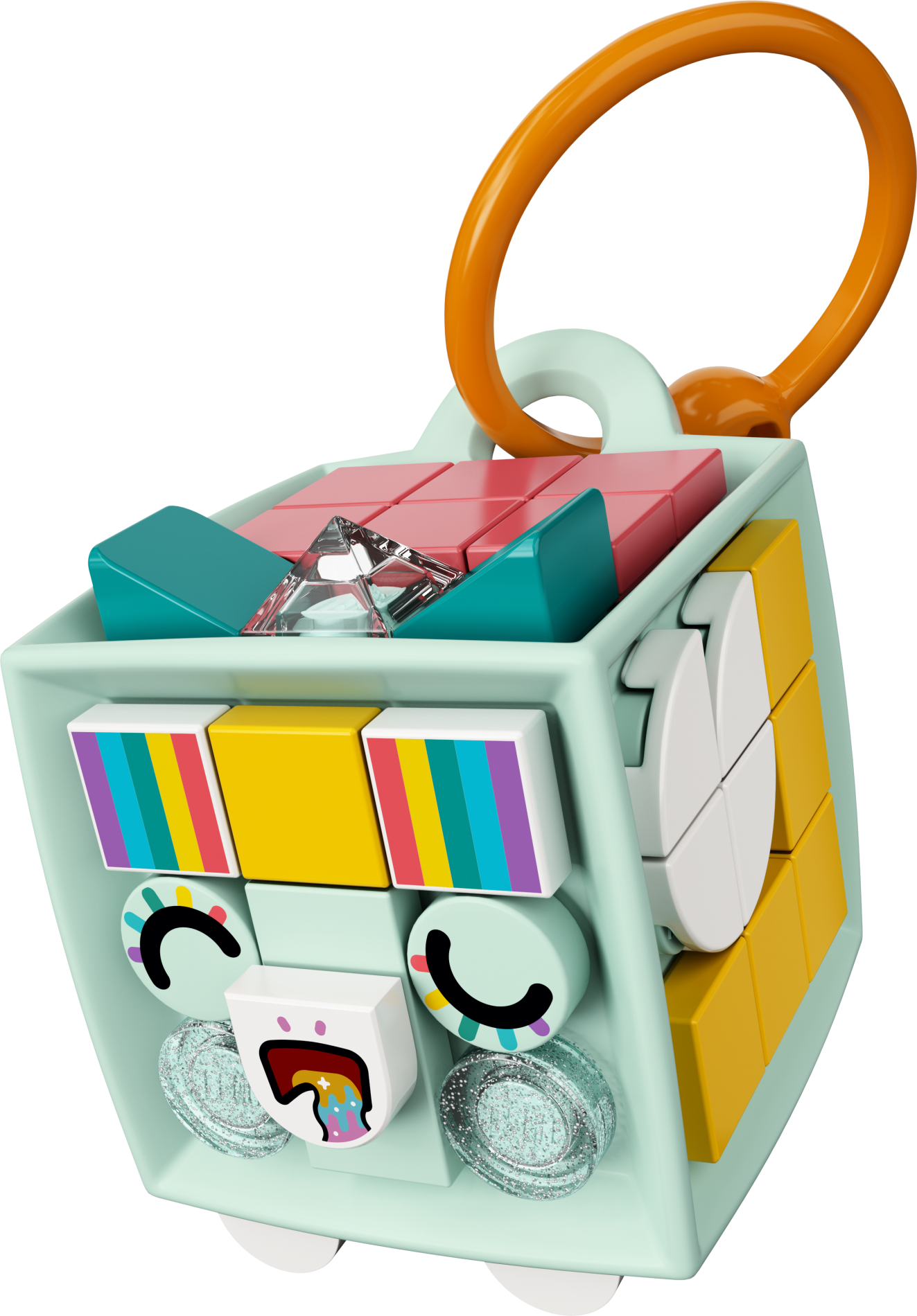 Tile, Round 1 x 1 with Black Eye with Dark Pink, Medium Azure, Dark Turquoise, Yellow and Coral Eyelashes Pattern