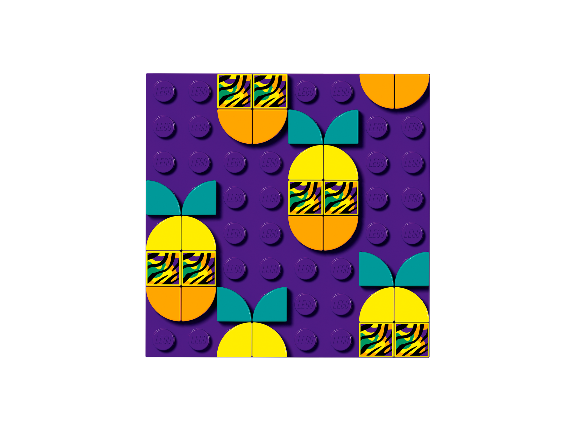 | 4 X Tile 1 x 1 with Groove with Medium Lavender Tropical Leaves and Yellow Pineapple with Dark Turquoise Top Pattern | Dark Purple |   |  |