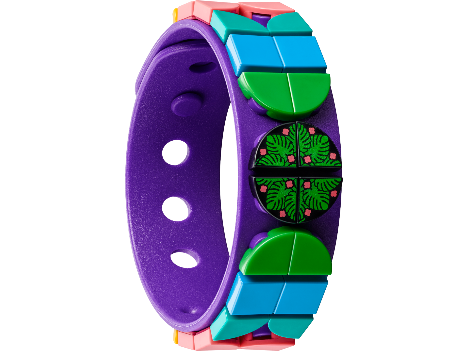 | 4 X Tile, Round 1 x 1 Quarter with Bright Green Tropical Leaves and Coral Flowers Pattern | Black |   |  |