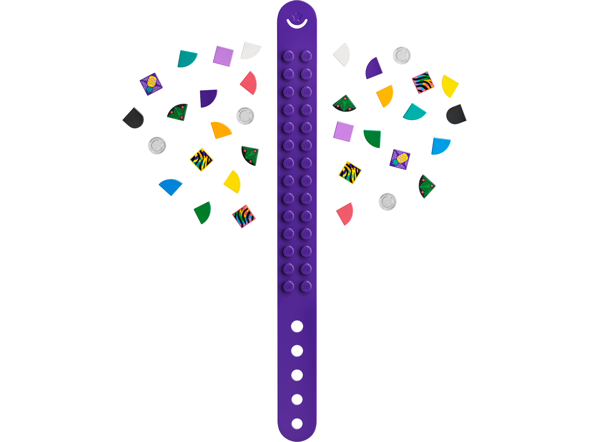 | 1 X Tile 1 x 1 with Groove with Black Tiger Stripes over Bright Green, Bright Light Orange, Dark Azure, and Medium Lavender Splotches Pattern | |   |  |