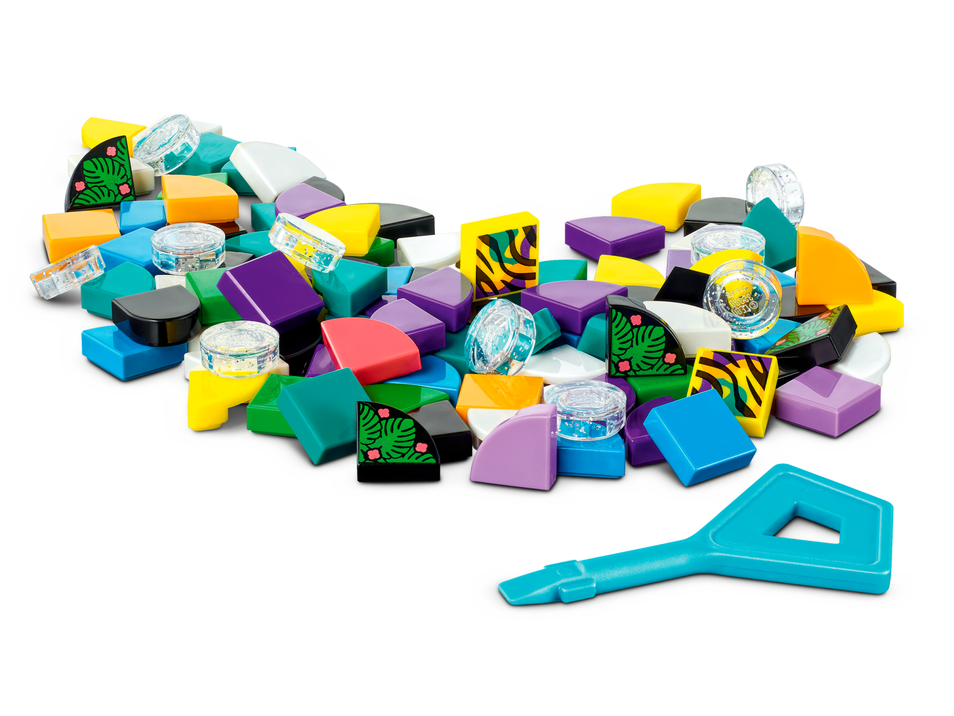 | 6 X Tile 1 x 1 with Groove with Black Tiger Stripes over Bright Green, Bright Light Orange, Dark Azure, and Medium Lavender Splotches Pattern | |   |  |