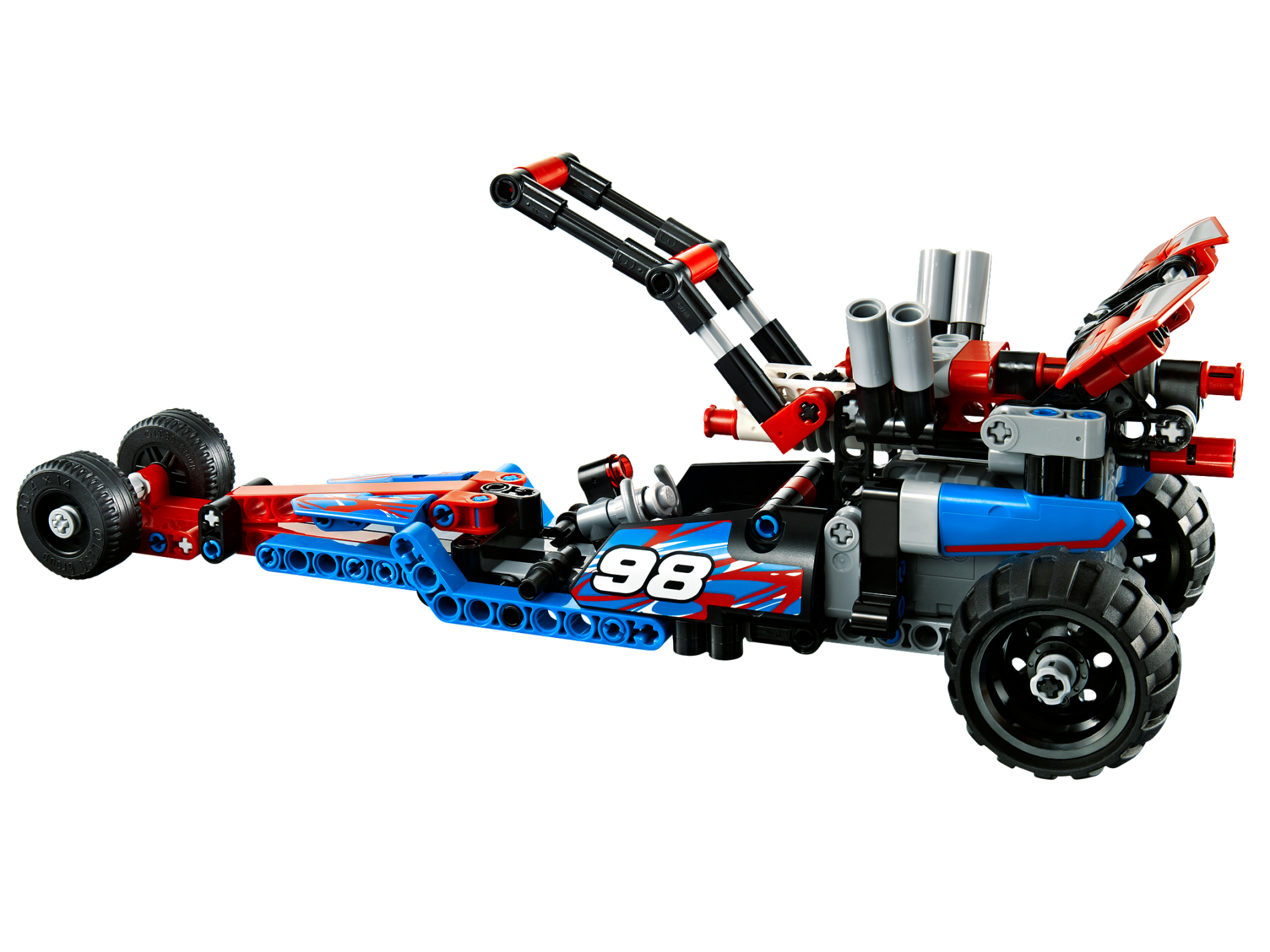 | 1 X Technic, Panel Fairing # 4 Small Smooth Long, Side B with '98' and Red and White Swirls on Blue Pattern (Sticker) - Set 42010 | Black |   |  |