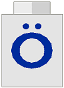 Brick 1 x 1 with Blue 'O' Umlaut Pattern