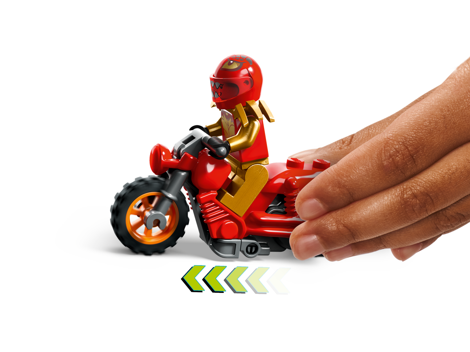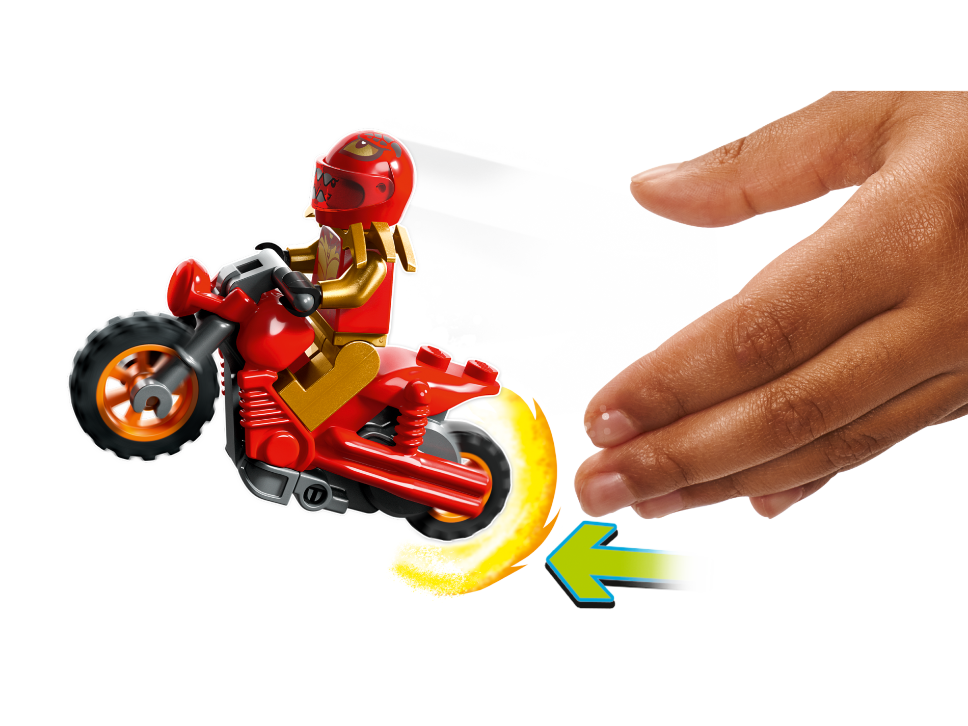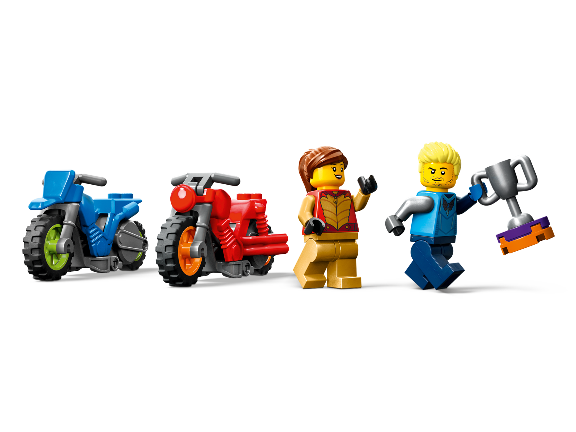 | 1 X Stuntz Flywheel Motorcycle Dual Exhaust Bike with Dark Bluish Gray Frame, Orange Wheels, and Dark Bluish Gray Handlebars | Red |   |  |