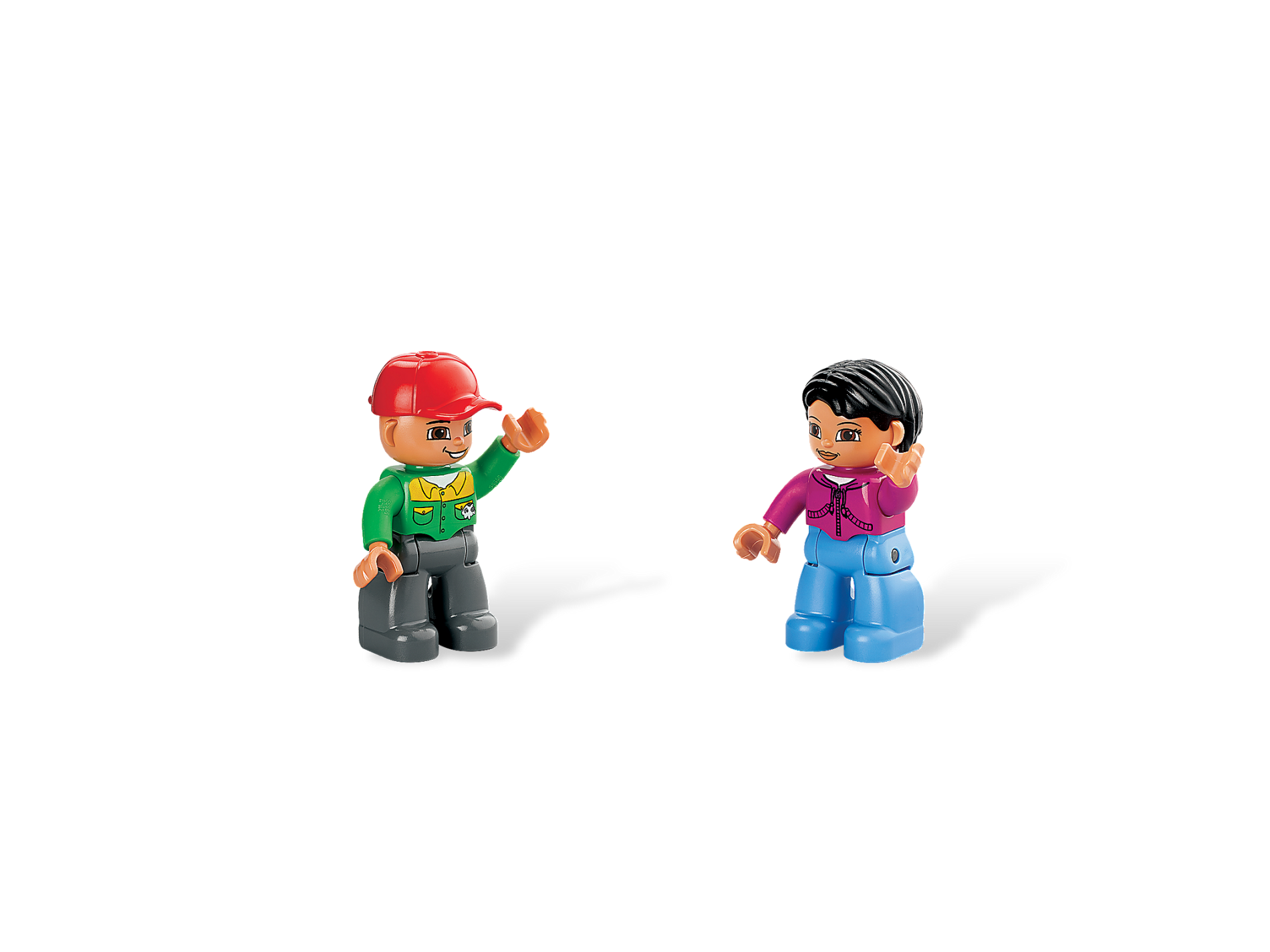 Duplo Figure Lego Ville, Male, Dark Bluish Gray Legs, Bright Green Button Down Shirt, Red Cap, Brown Eyes, Closed Mouth Smile (Mechanic)
