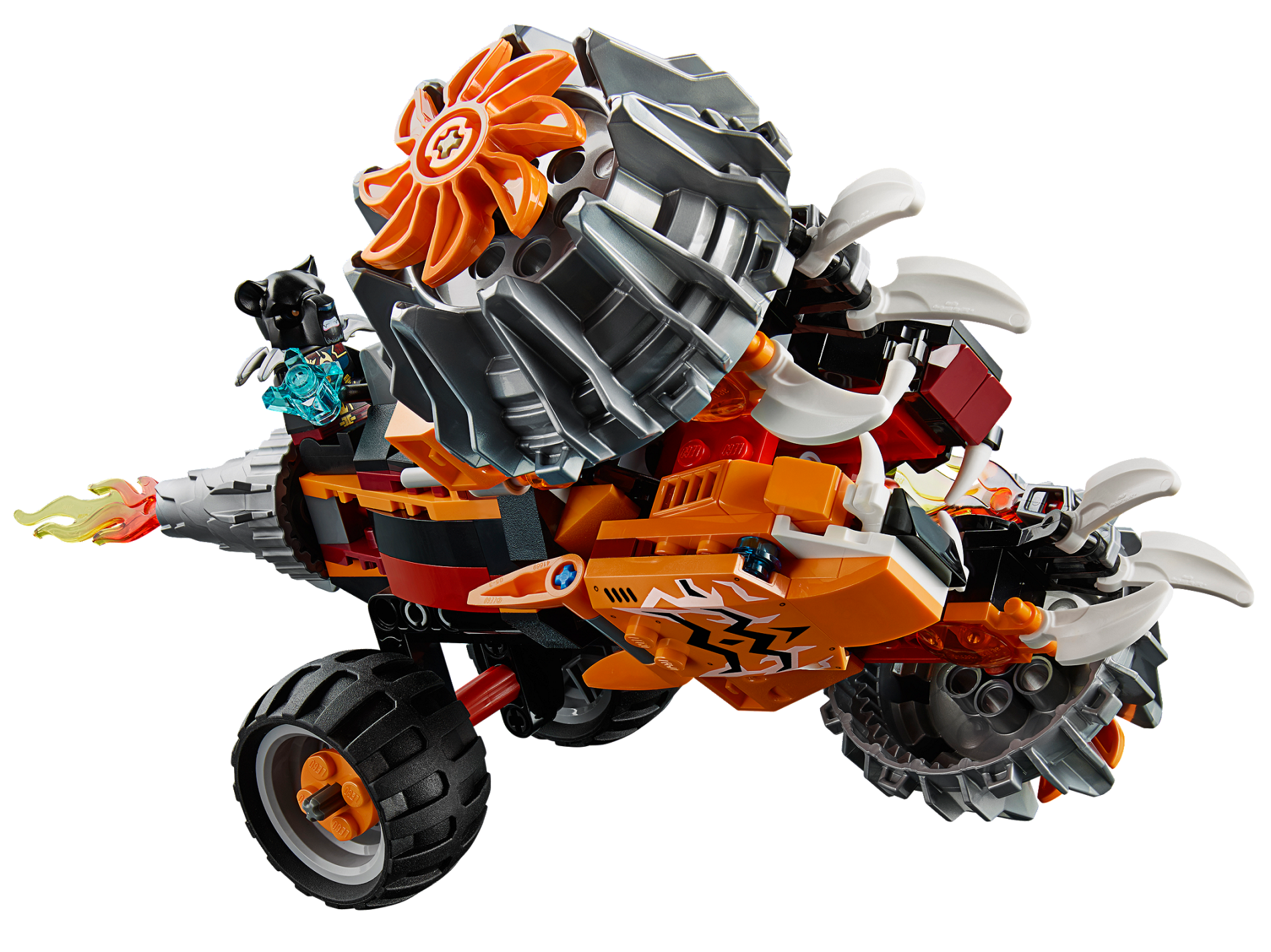 | 1 X Plate, Modified 1 x 4 with 2 Studs with Silver Vent and Red and Yellow Flame on Trans-Clear Background Pattern Model Right Side (Sticker) - Set 70222 | Black |   |  |