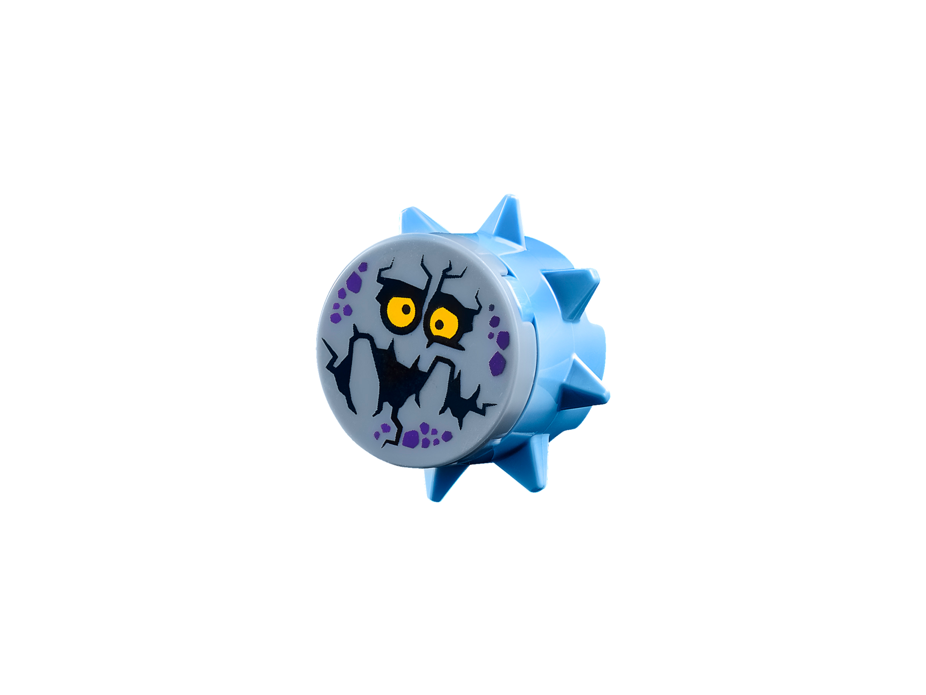 | 1 X Tile, Round 2 x 2 with Bottom Stud Holder with Purple Rock Spots, Yellow Eyes with Pupils, Black Mouth, Big Blocky Teeth (Bouldron) Pattern | Sand Blue |   |  |