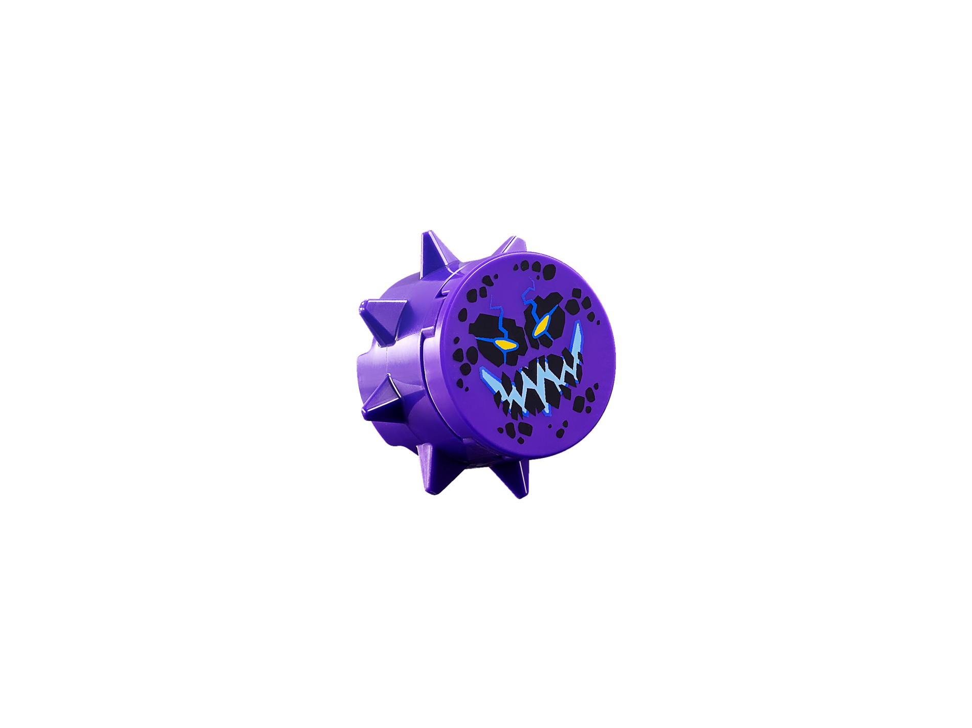 | 1 X Tile, Round 2 x 2 with Bottom Stud Holder with Black Rock Teeth and Spots, Narrowed Yellow Eyes, Blue Electrified Evil Smile (Bouldron) Pattern | Dark Purple |   |  |