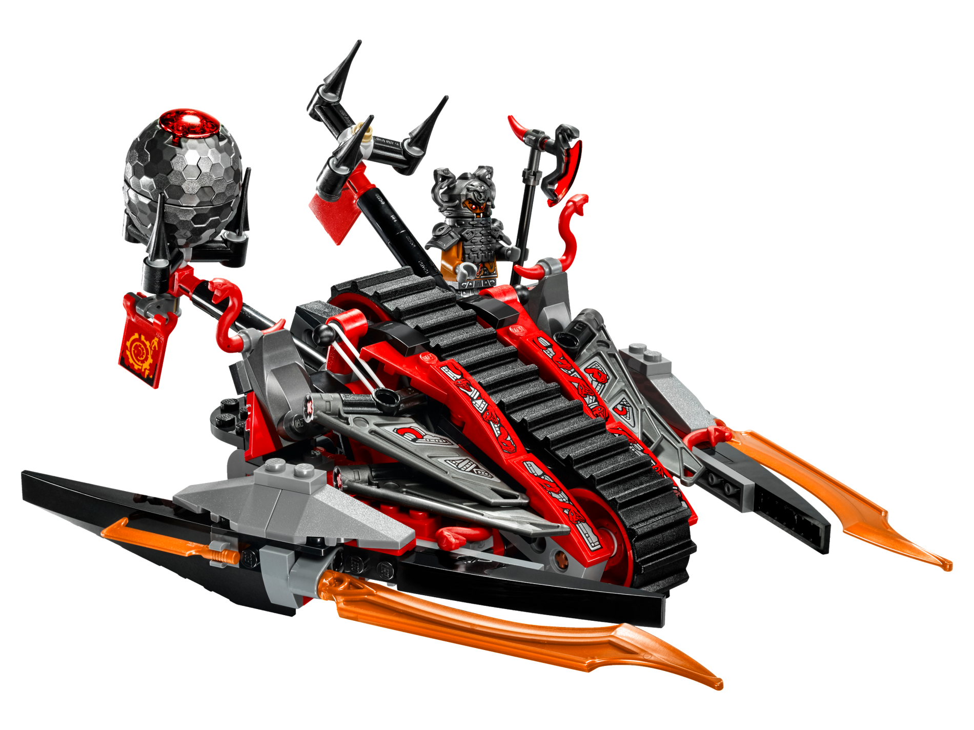 | 1 X Minifig, Weapon Axe Head with Snake and Trans-Red Curved Blade Pattern | Pearl Dark Gray |   |  |