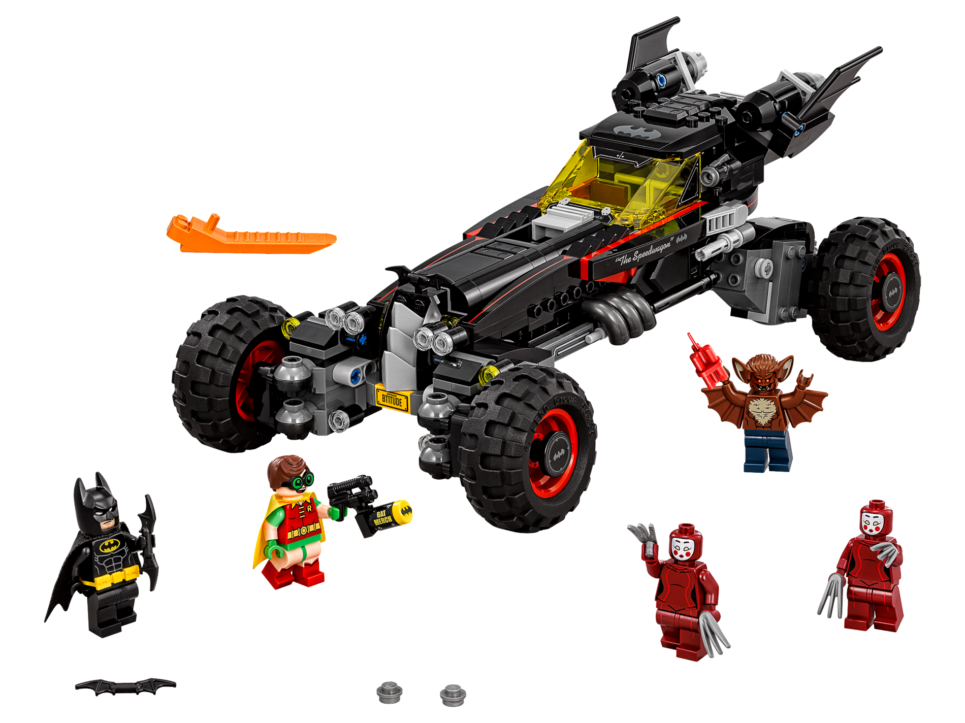 | 1 X Slope, Curved 10 x 1 with Silver Bat Symbol and White Cursive '"The Speedwagon"' Model Right Side Pattern (Sticker) - Set 70905 | Black |   |  |