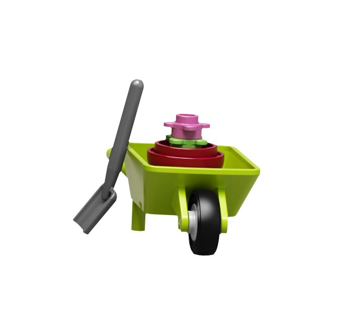 | 1 X Minifig, Utensil Wheelbarrow Frame with White Pulley Wheel and Black Tire (98288 / 3464 / 59895) | Lime |   |  |