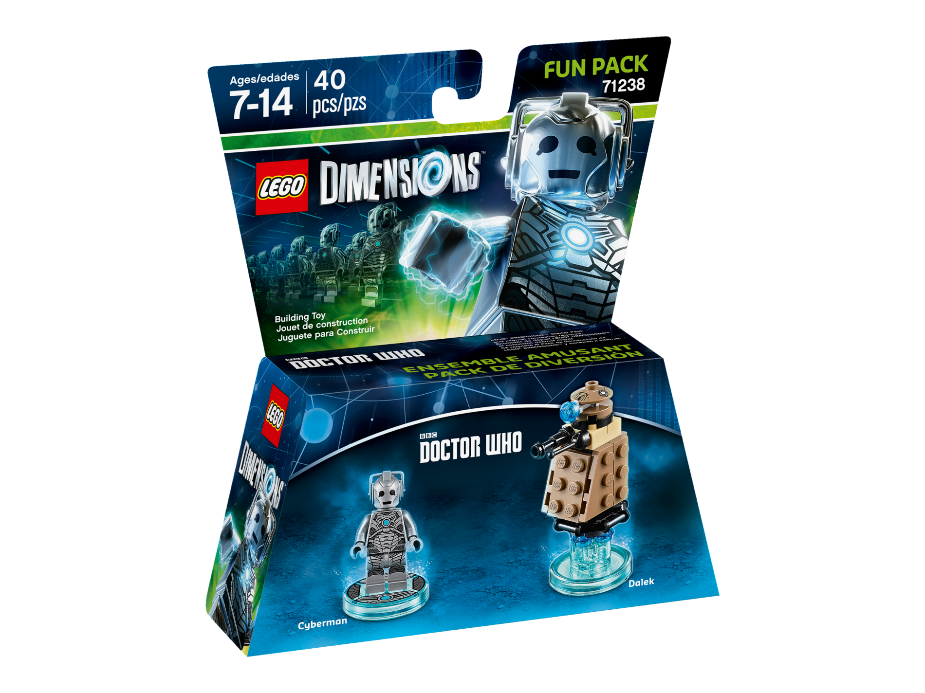 | 1 X Dimensions Toy Tag 4 x 4 x 2/3 with 2 Studs for Cyberman #24 with Silver Armor with Scales and Blue Circle Pattern | Trans-Light Blue |   |  |