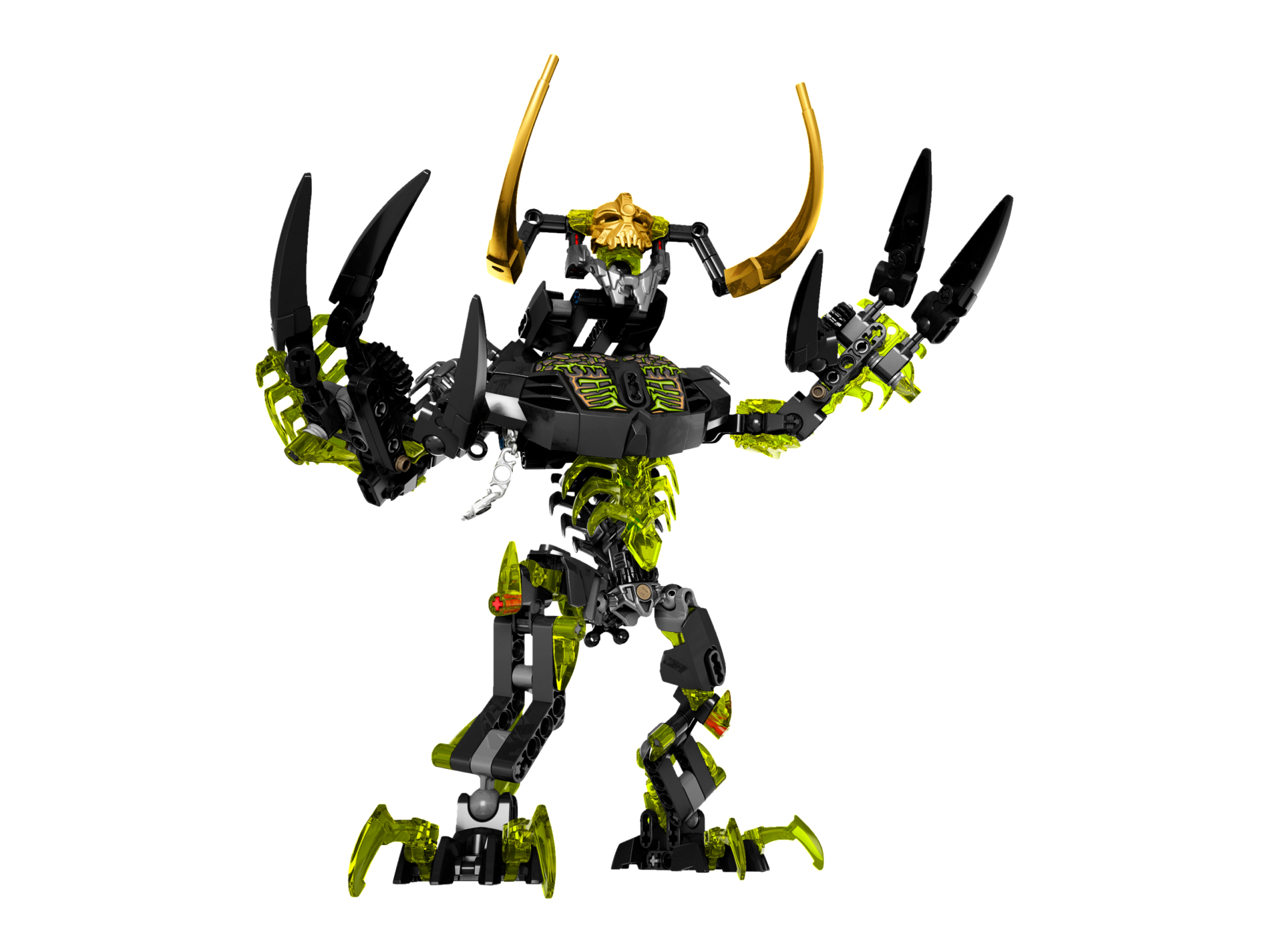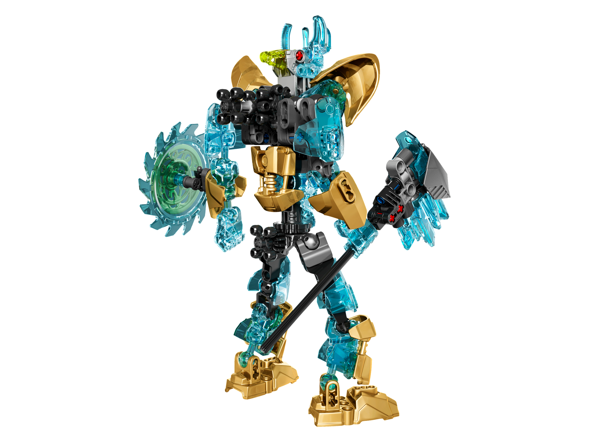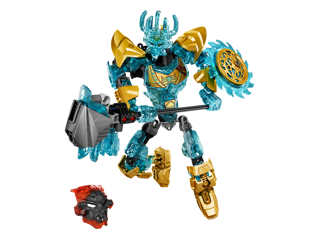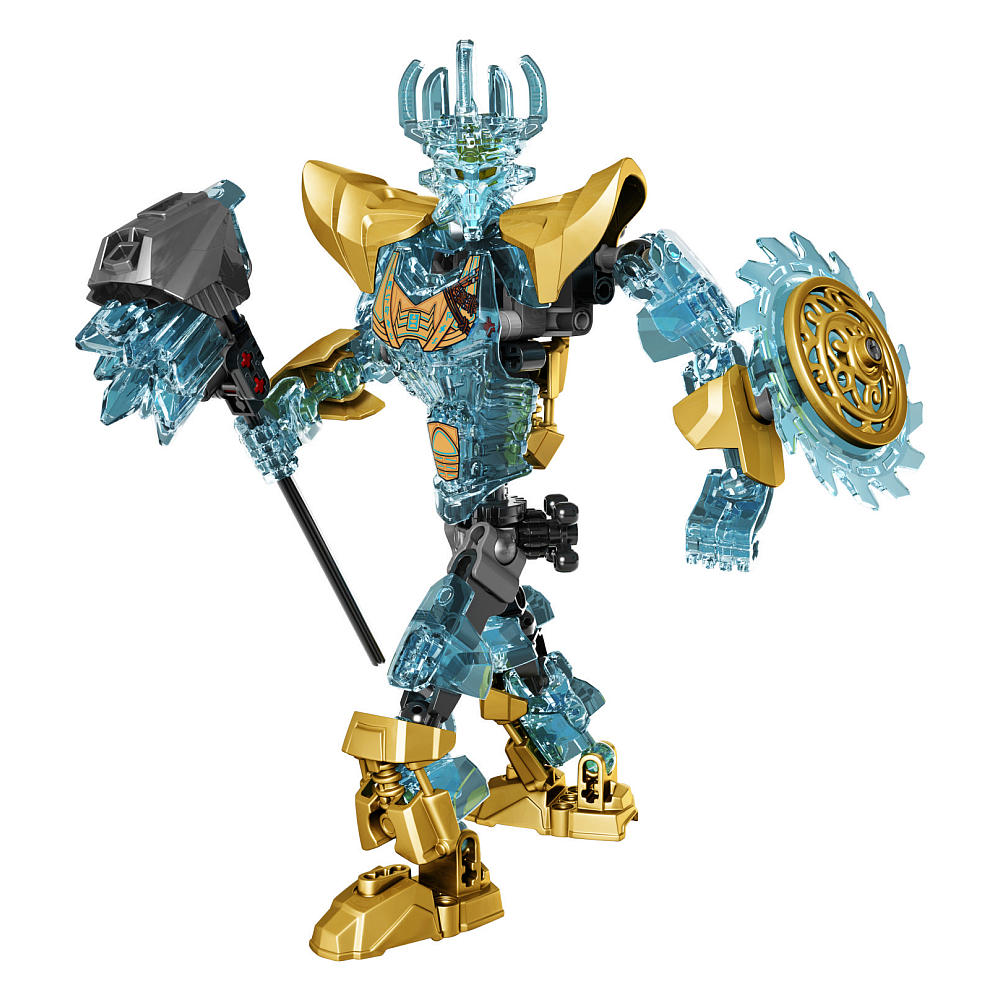 | 1 X Large Figure Torso with Bionicle Metallic Gold Scaled Armor, Medium Azure Runes and Reddish Brown Straps Pattern (Ekimu) | Trans-Light Blue |   |  |