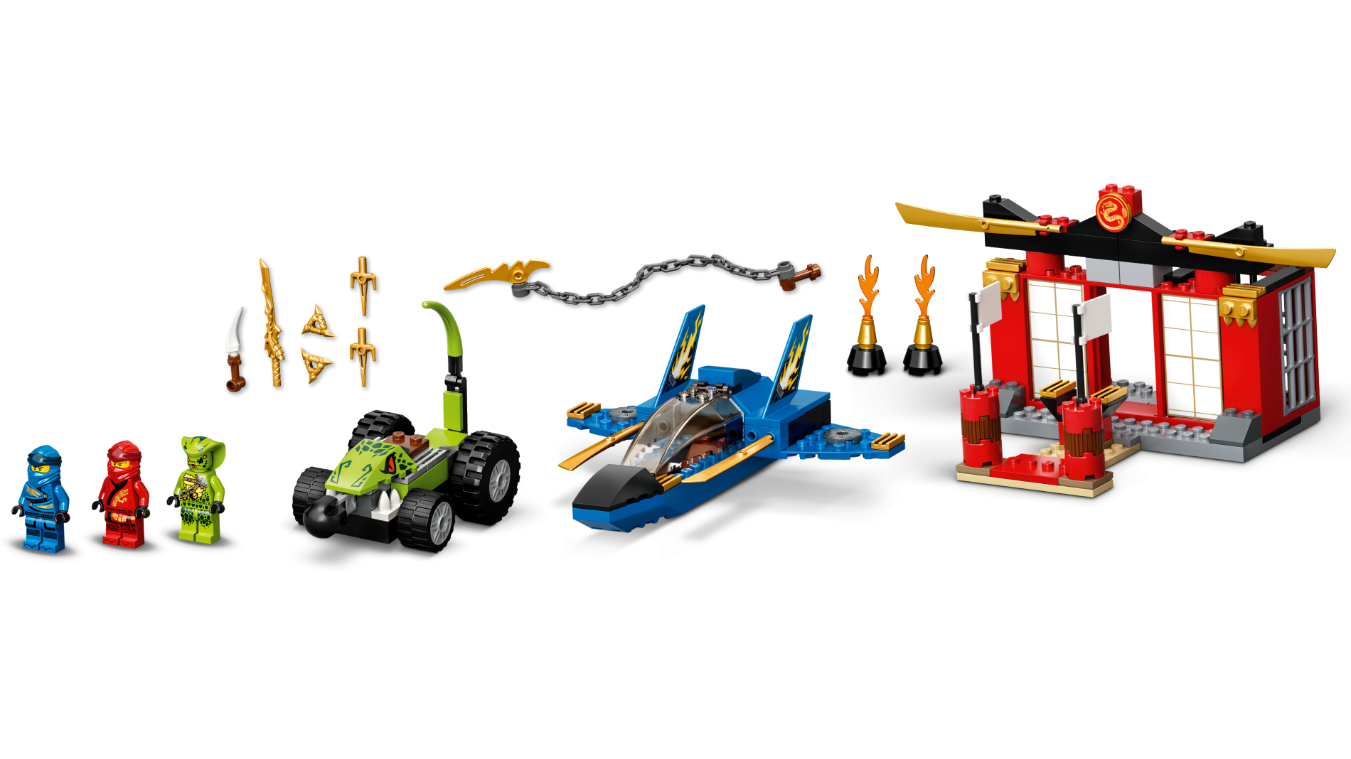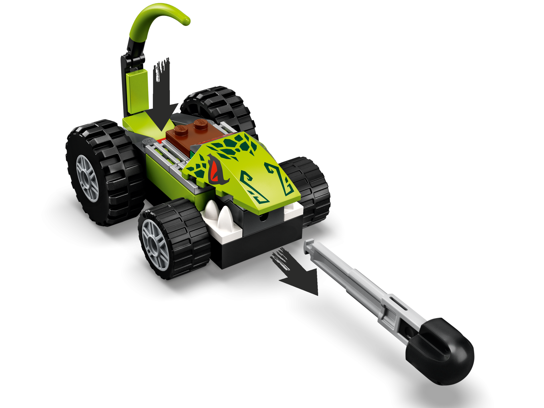 | 1 X Wedge 4 x 4 No Studs with Red Eyes and Dark Green Scales and Nose Pattern | Lime |   |  |