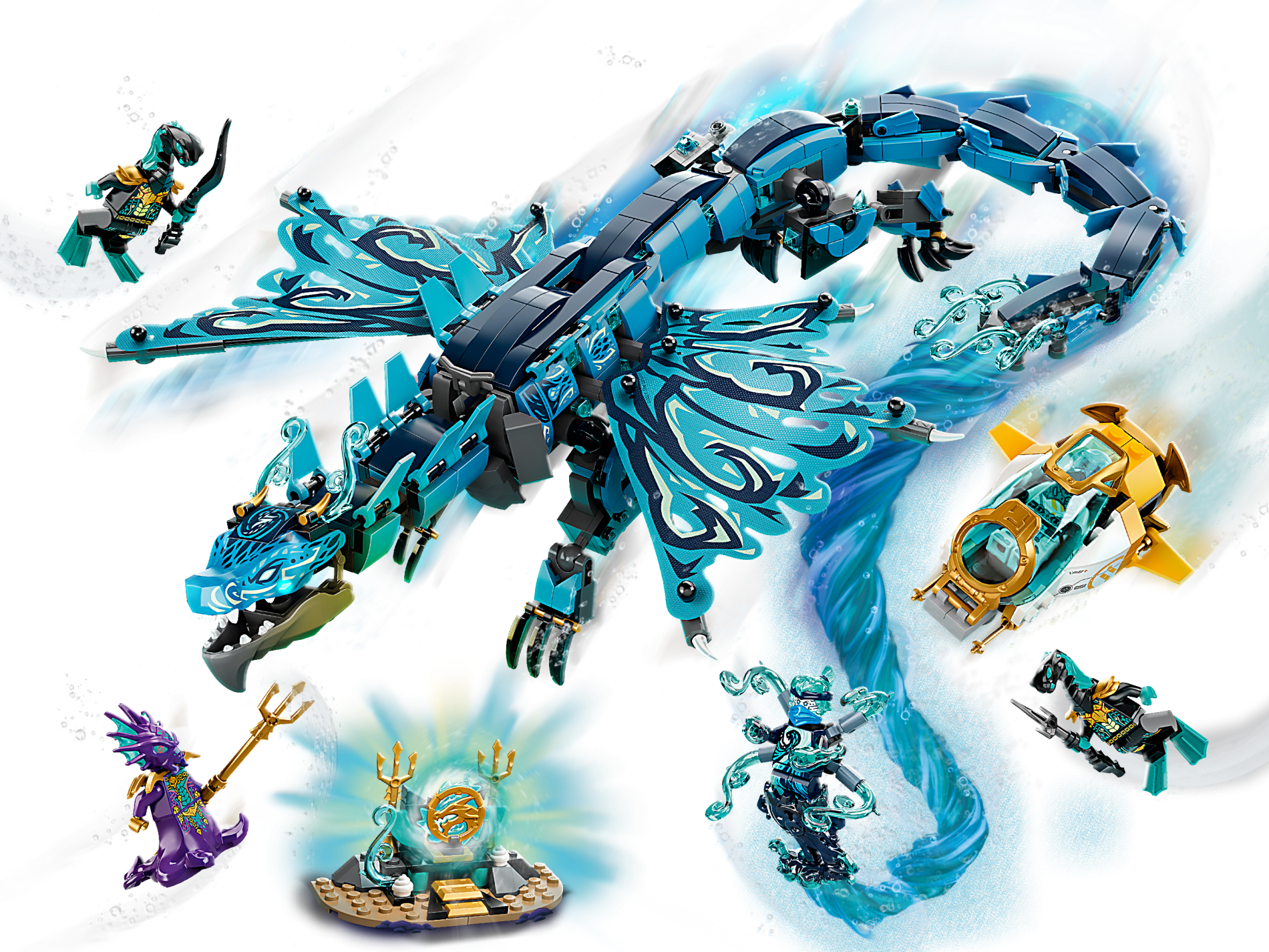 | 1 X Dragon Head (Ninjago) Upper Jaw with White Eyes, White Filigree, Black and Metallic Light Blue Scales and White Teeth Pattern | Dark Azure |   |  |