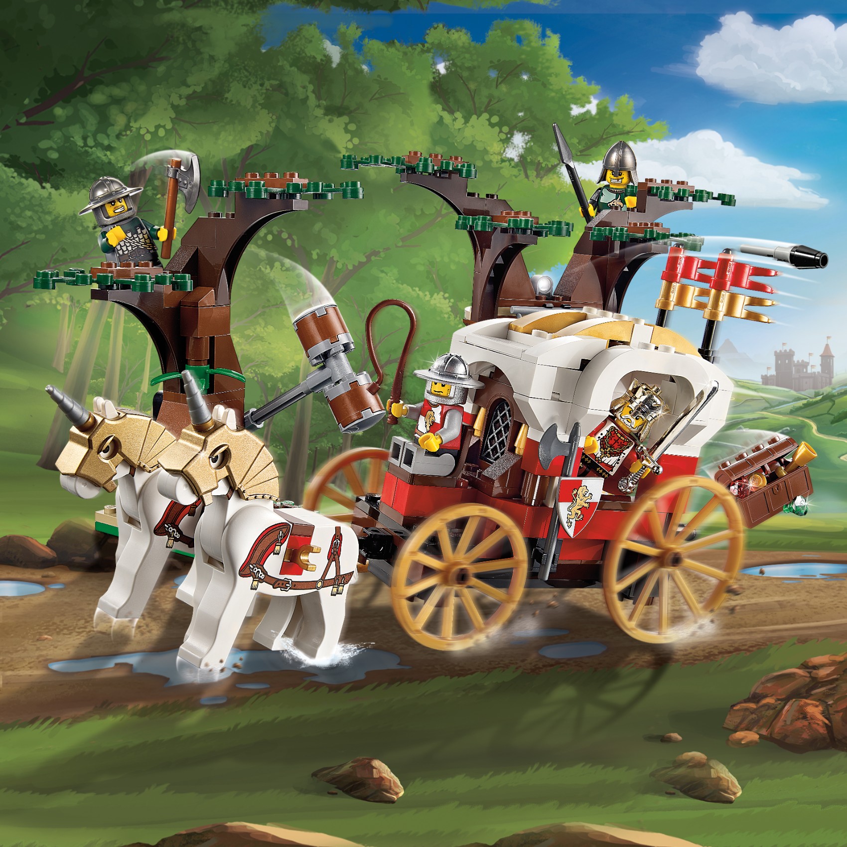 | 2 X Minifig, Shield Triangular with Gold Lion on Red and White Quarters Background Pattern | Light Bluish Gray |   |  |