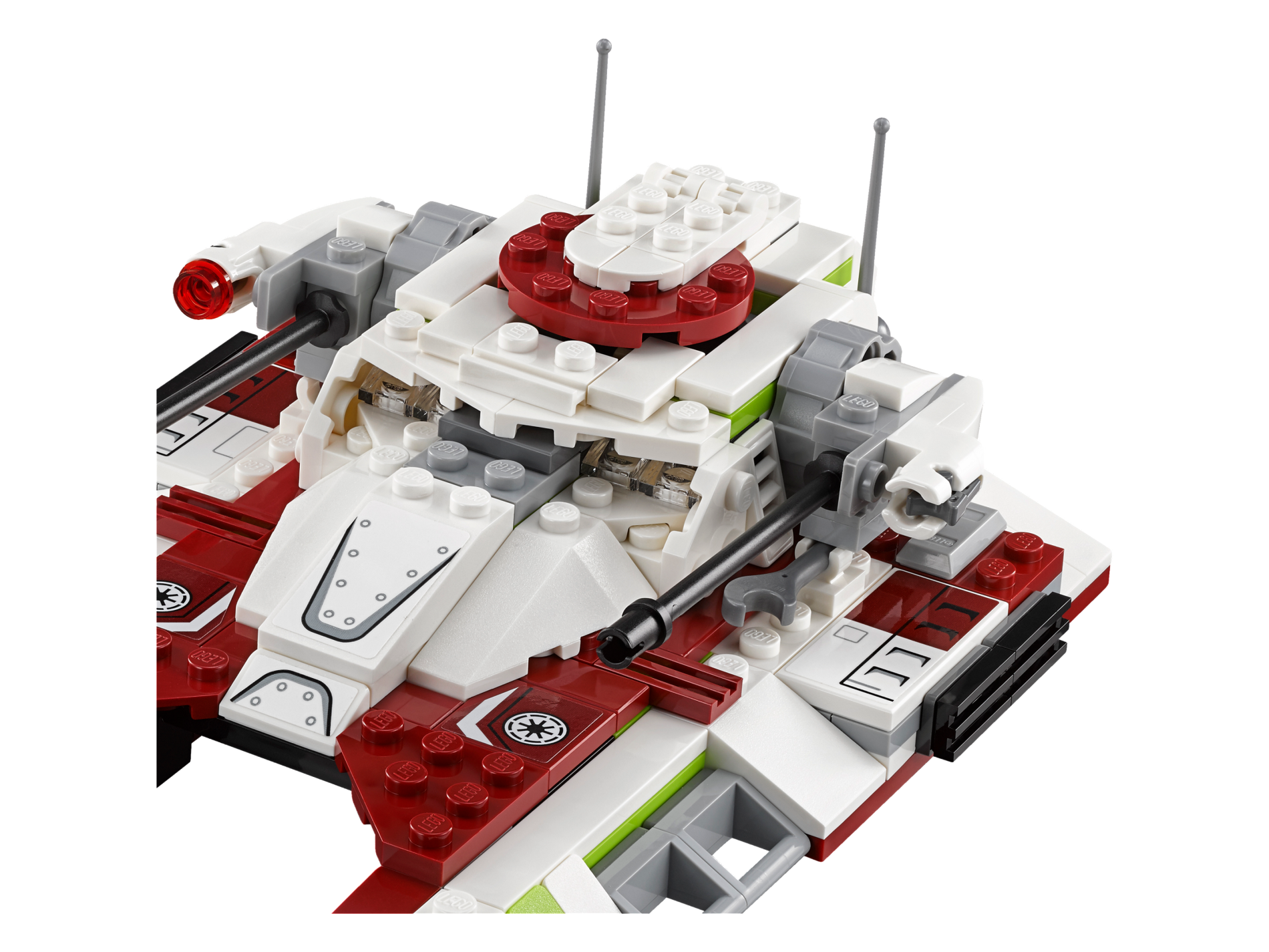 | 1 X Tile 2 x 2 with SW Republic Logo and White and Black Stripes Bent Pattern Model Right (Sticker) - Set 75182 | Dark Red |   |  |