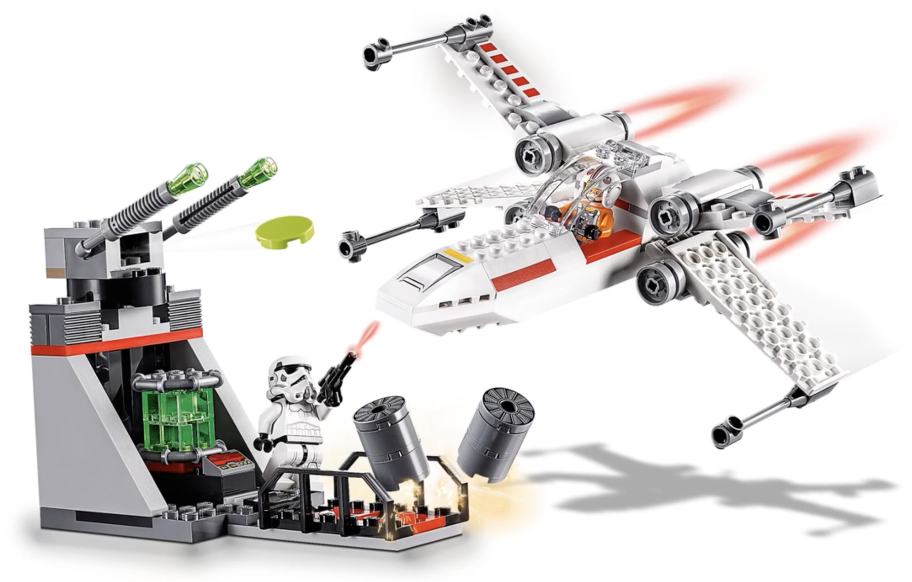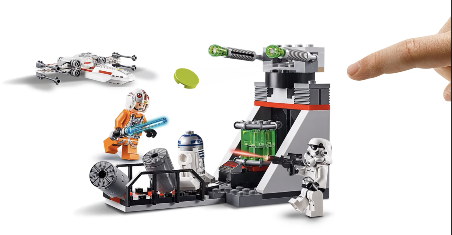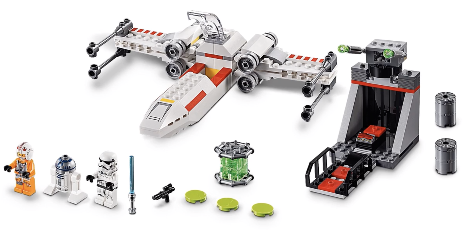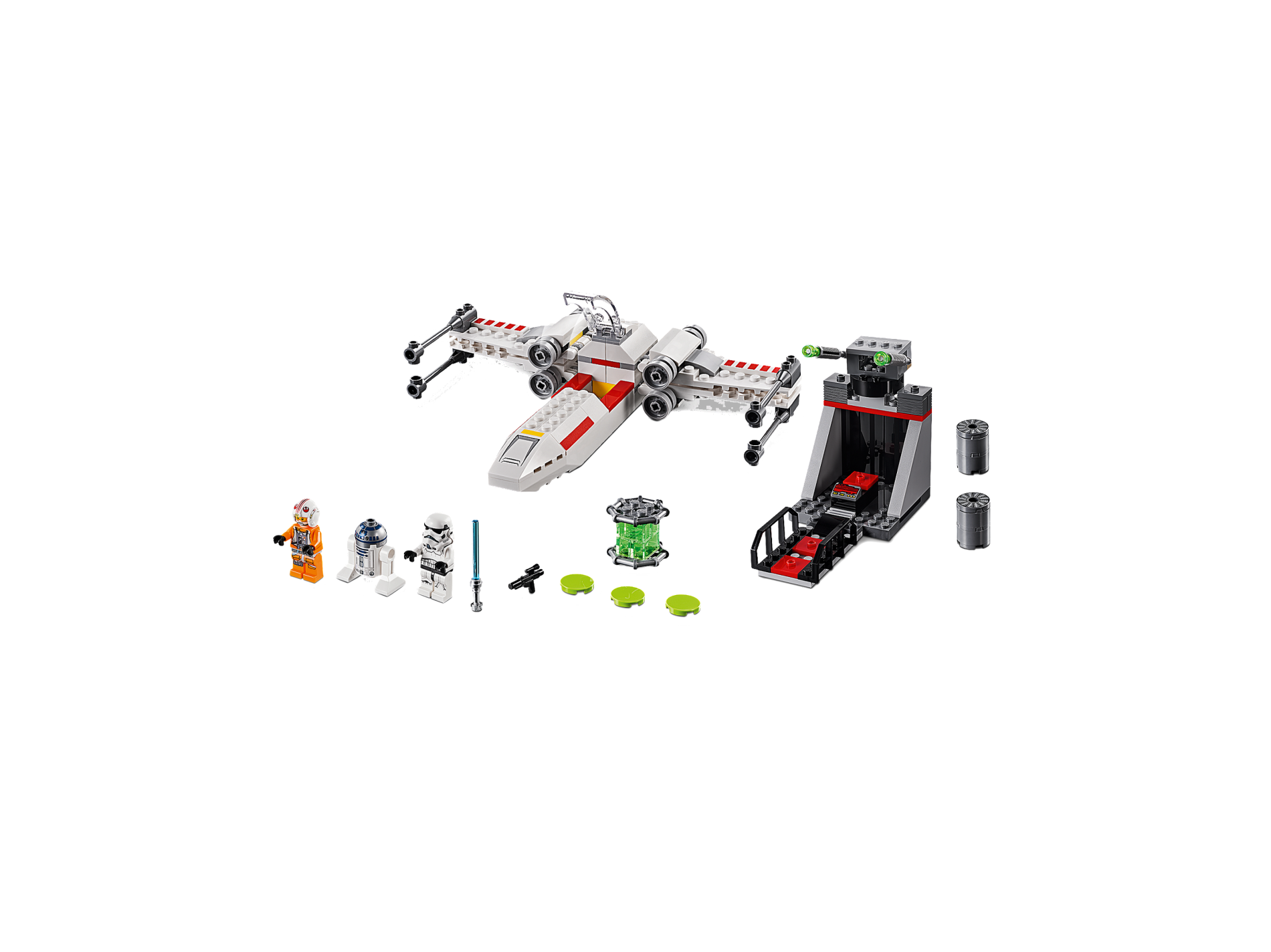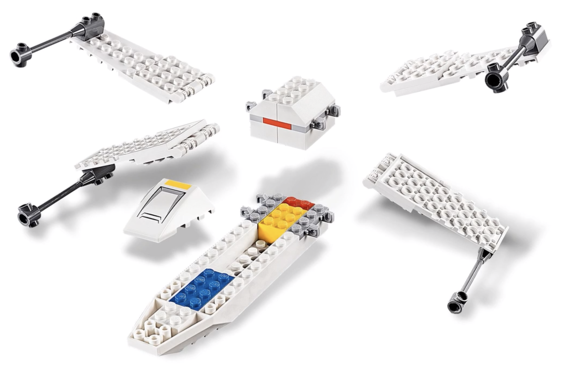 | 1 X Wedge 4 x 4 No Top Studs with X-wing Nose, Hull Plates and Yellow Stripe Pattern | White |   |  |